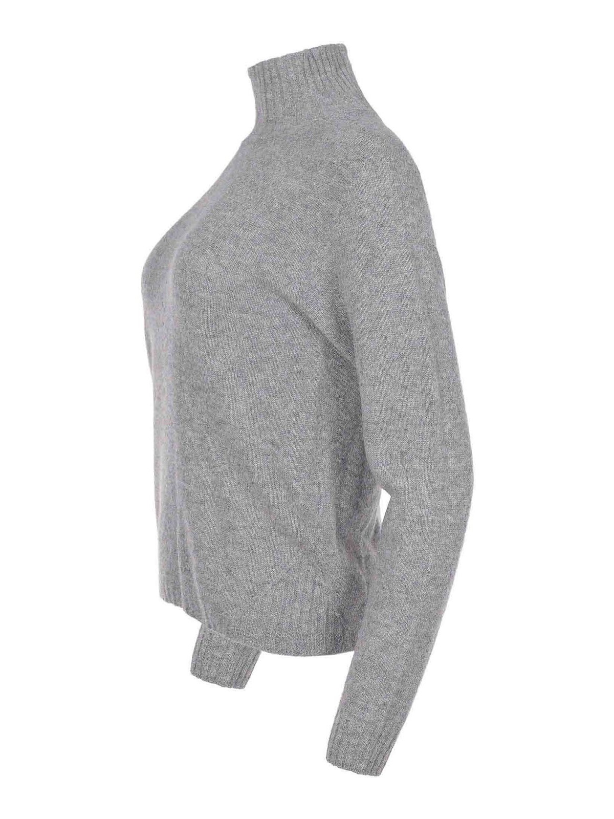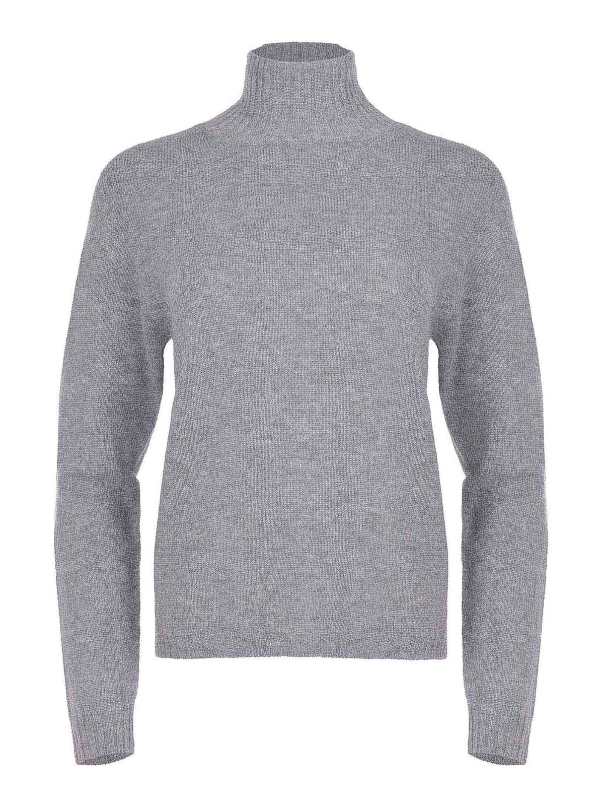 Pull Solotre en mélange de laine et de cachemire gris, col haut côtelé, manches longues. poignets côtelés, 55 % laine, 45 % cachemire fabriqué en Italie