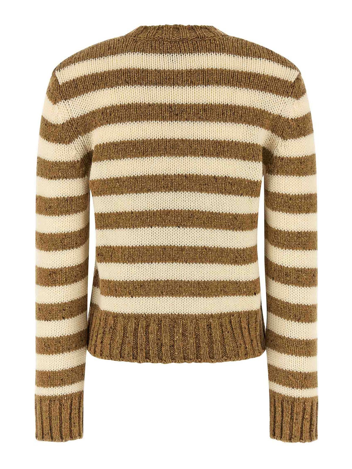 Pull en laine vierge rayée en maille, col rond, manches longues à revers.