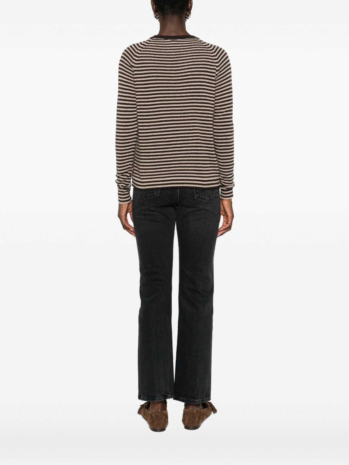 Col rond marron, manches longues, bordure côtelée