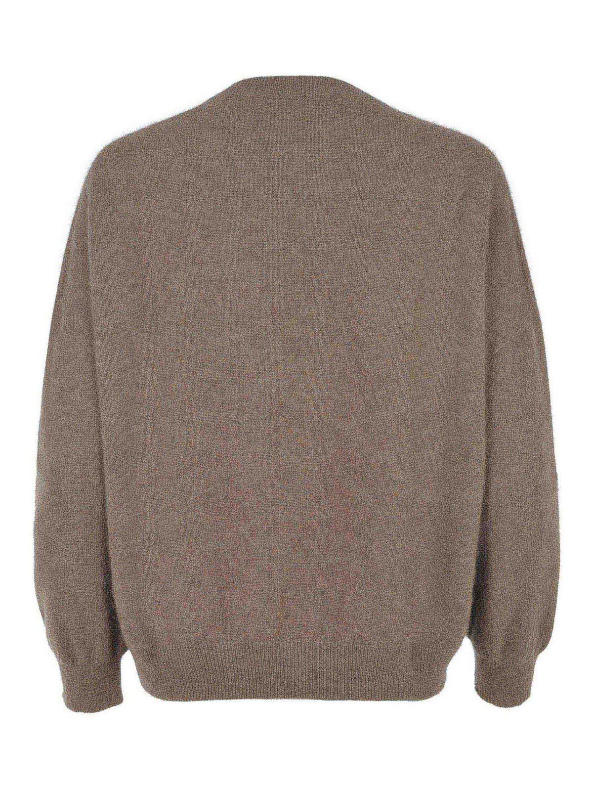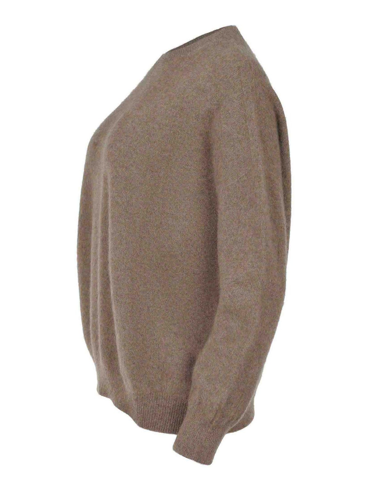 Pull Vanis en raton laveur de couleur vison, col rond côtelé, manches longues, poignets et ourlet côtelés, 100% raton laveur fabriqué en Italie