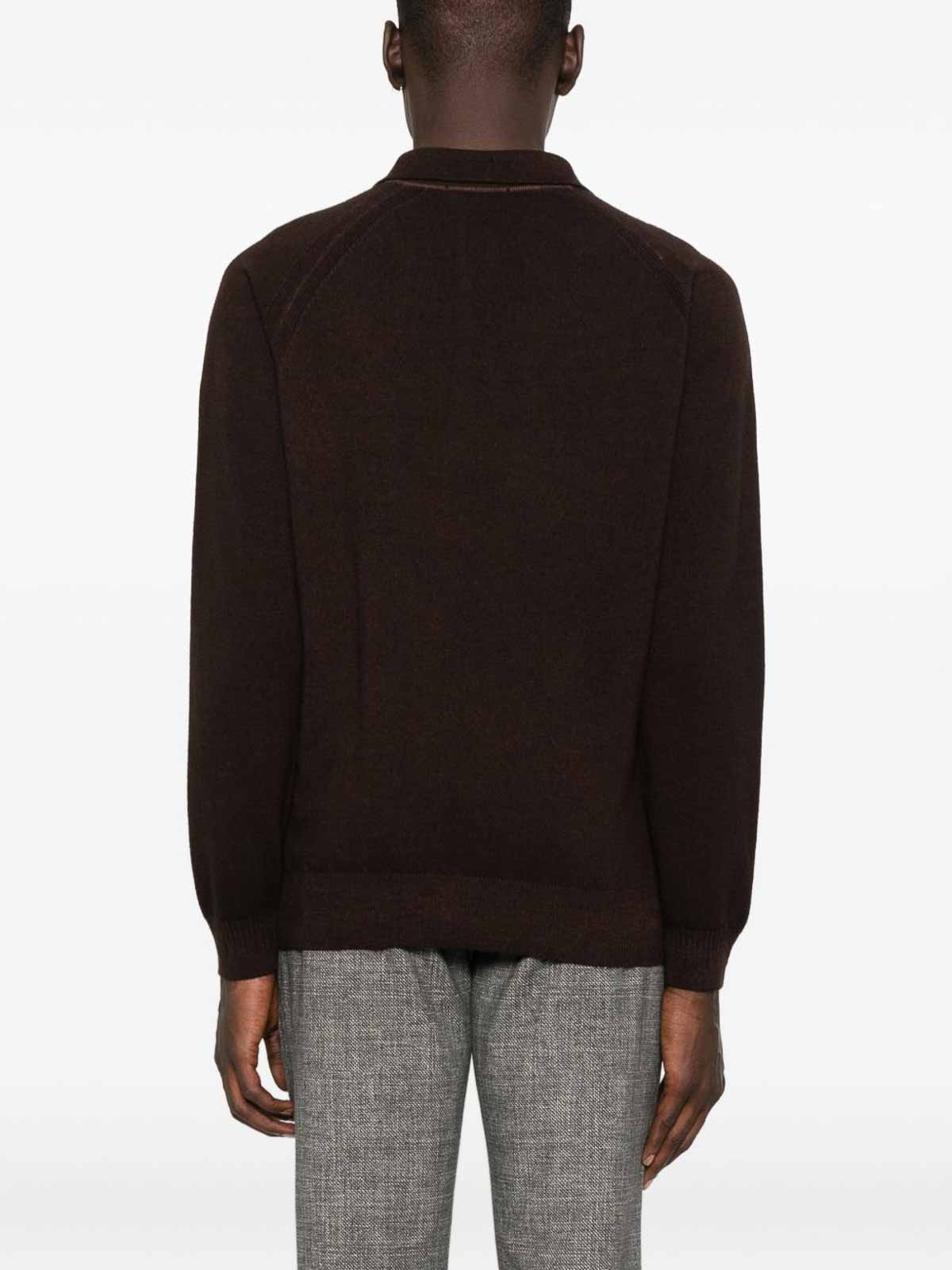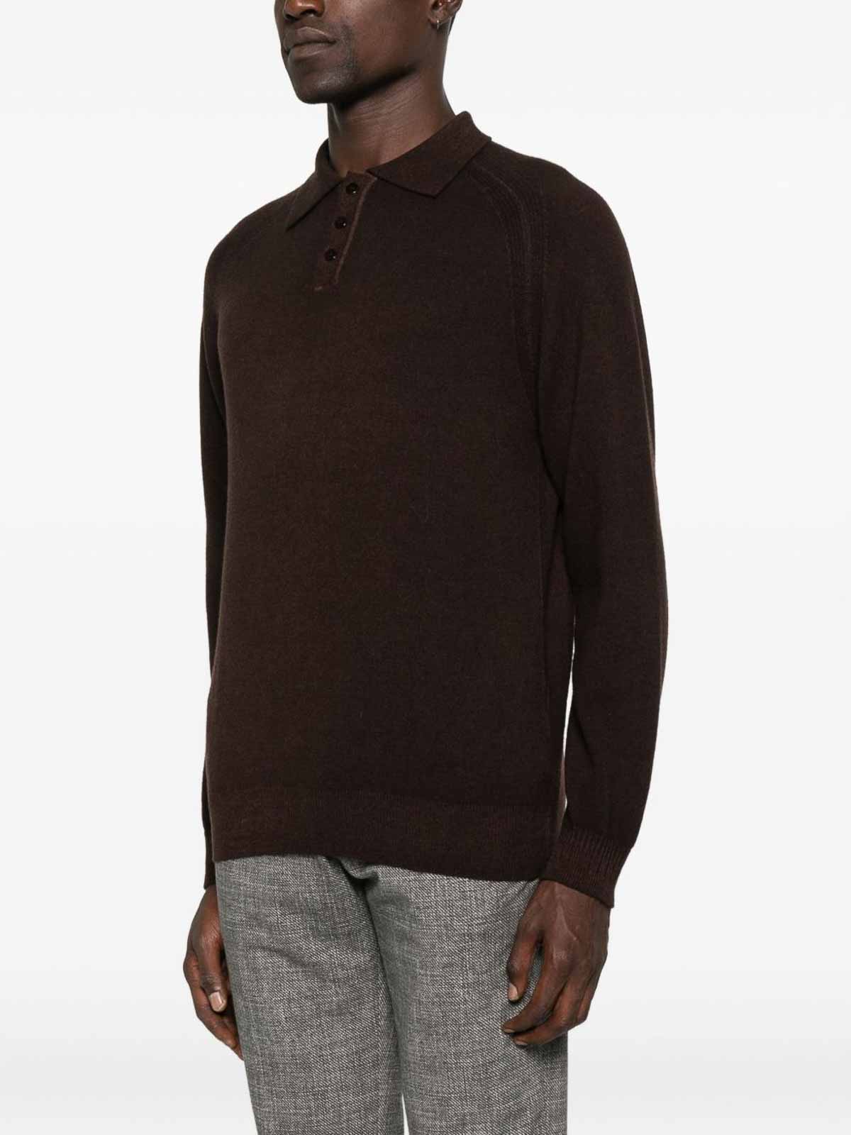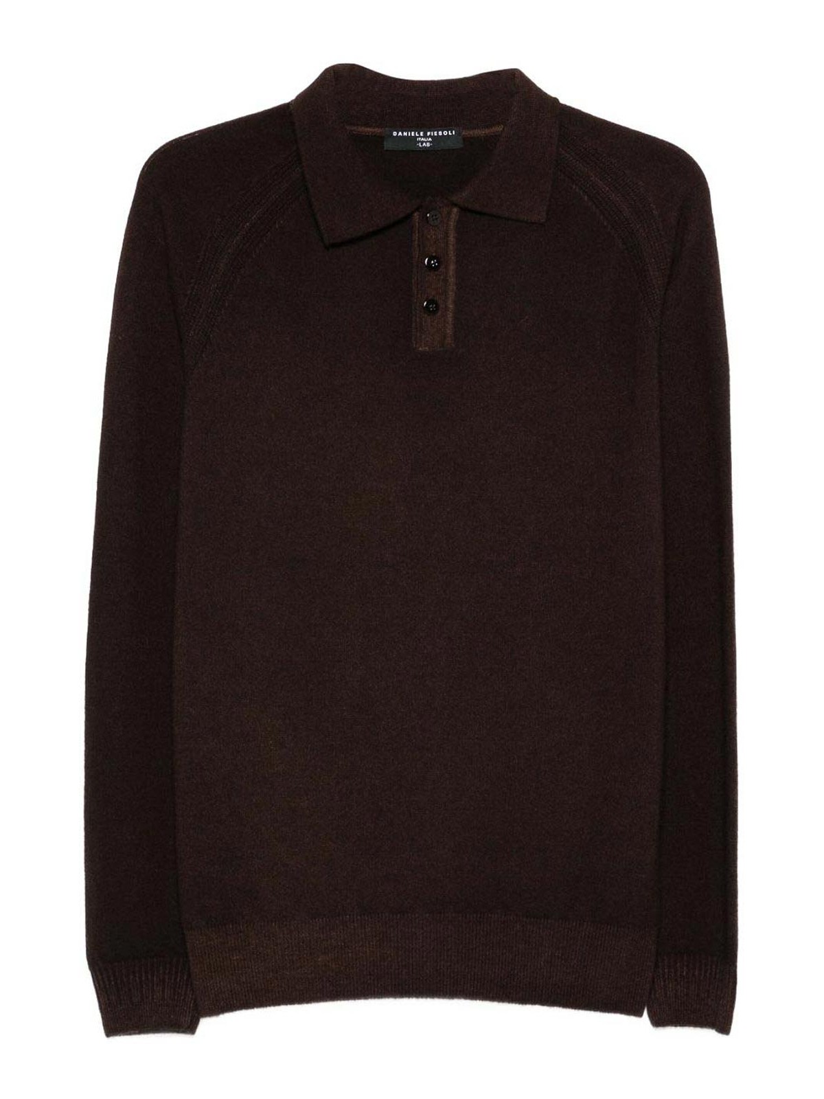 Col polo marron, manches longues raglan, poignets côtelés boutonnés