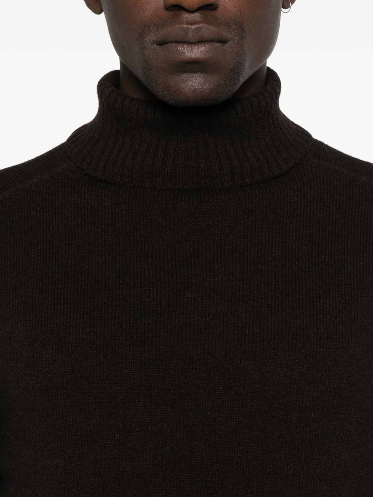 Col roulé marron, manches longues, poignets et ourlet côtelés