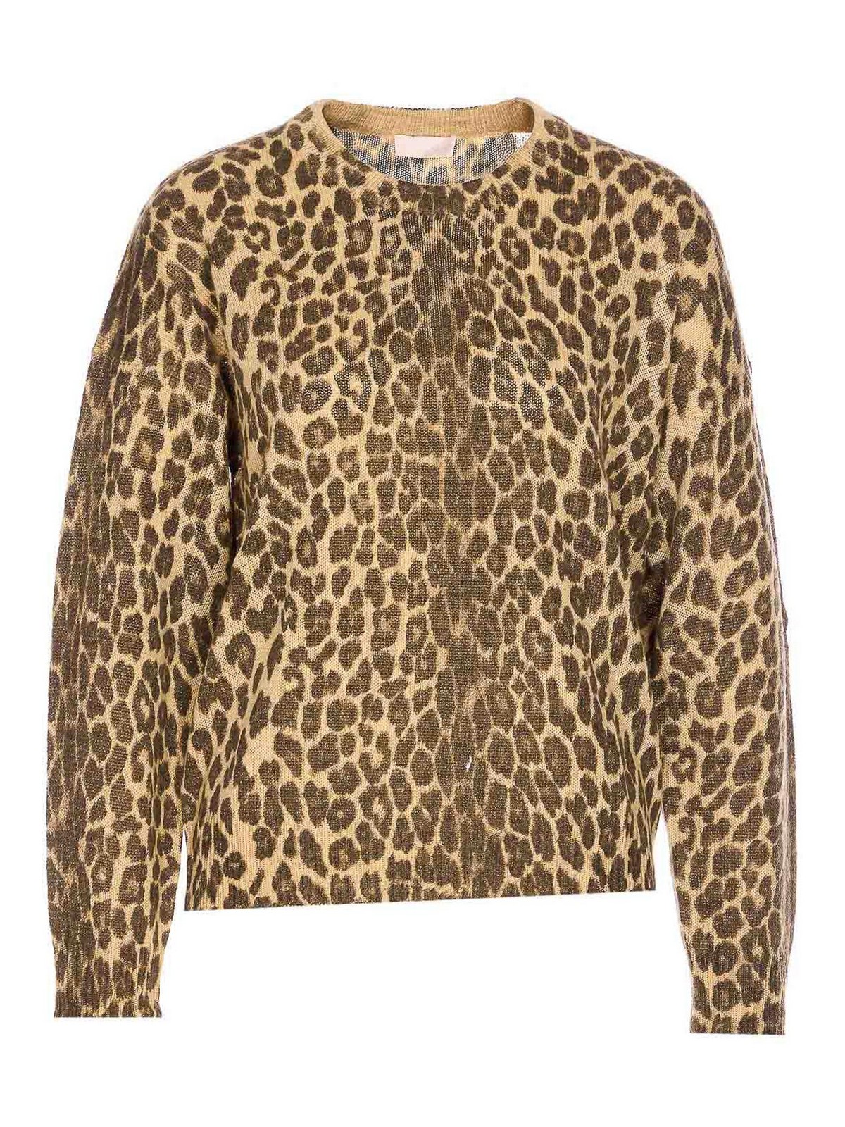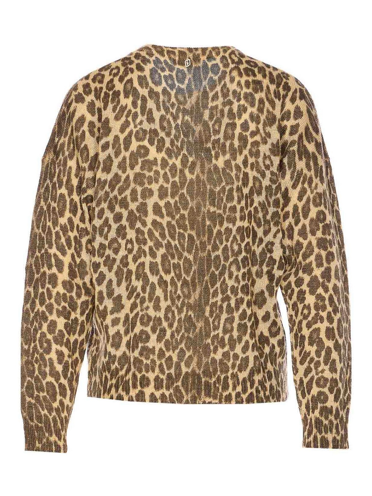 Pull multicolore Liu Jo à col rond à manches longues et imprimé léopard Nom de la couleur du créateur : marron