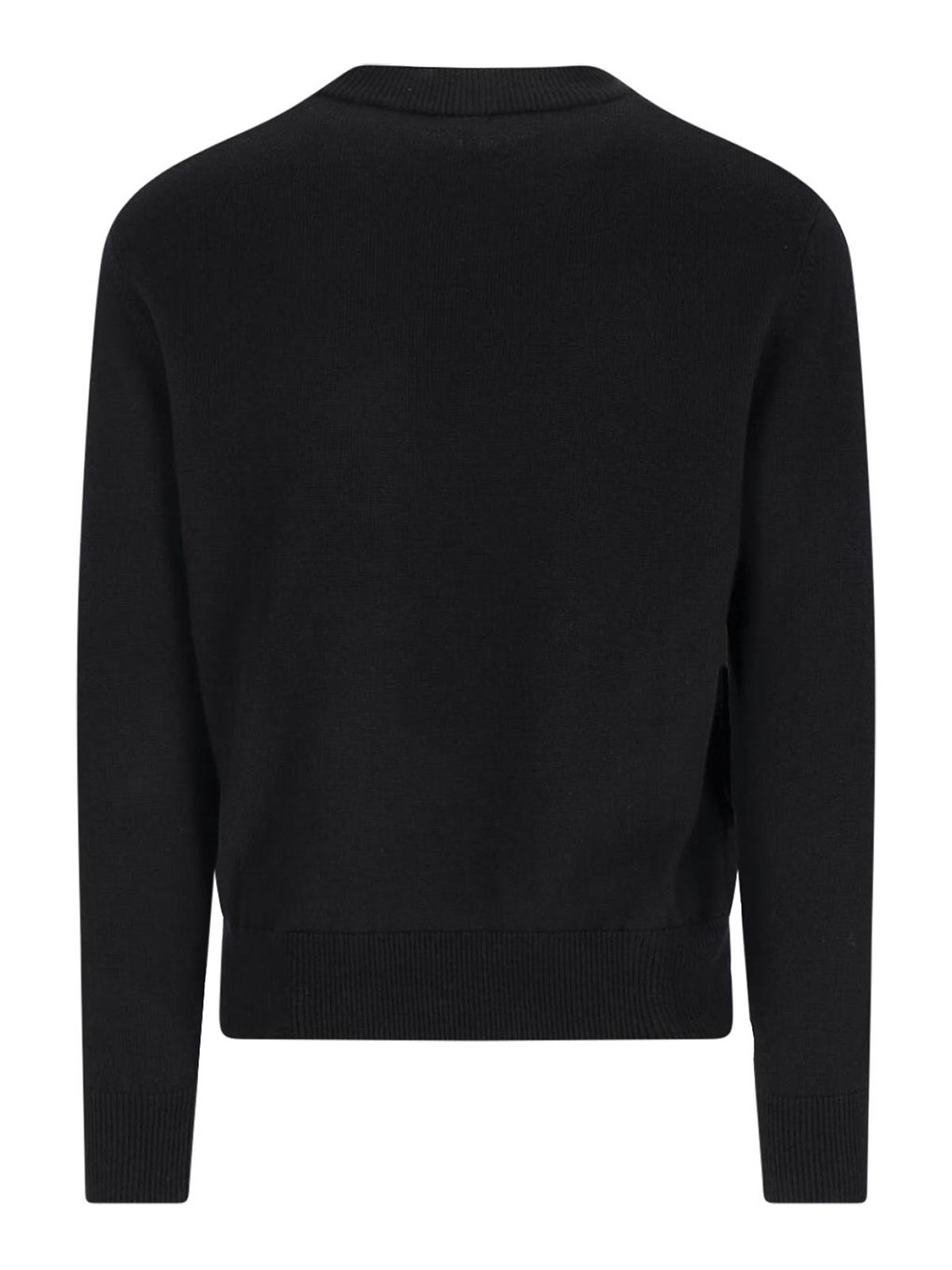 Pull Sunflower Moon, en laine noire, col rond, manches longues, finitions côtelées, ourlet droit.
