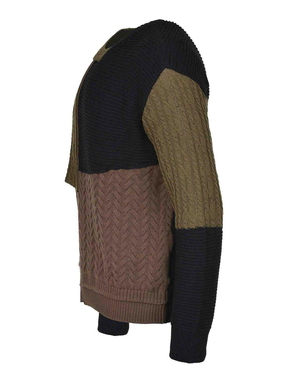 Pull cloche Andersson en laine mélangée multicolore. Col rond côtelé. Manches longues. Poignets côtelés. Patchwork à blocs de couleurs avec motif asymétrique. Ourlet côtelé asymétrique. 69 % coton, 31 % laine