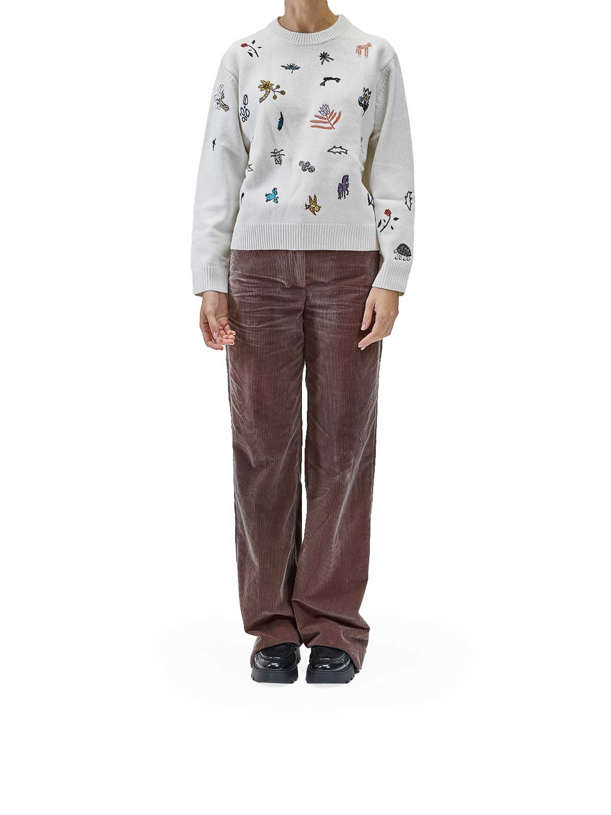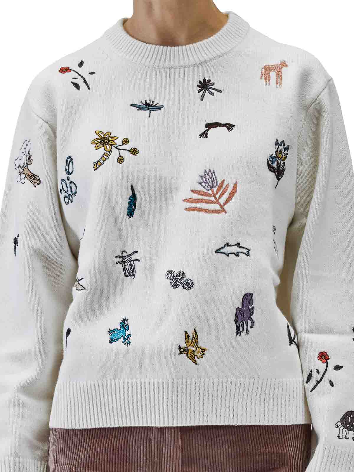Pull brodé d'animaux en blanc/multicolore. Pull en laine de Paul Smith avec un motif contrastant de petites bêtes brodé sur le devant et le dos. Doté d'un col rond, de poignets et d'un ourlet côtelés. Col rond, motif Little Beasts avec broderie intégrale, col rond, poignets et ourlet côtelés. Couleur : blanc multicolore. 100 % laine. Coupe : normale