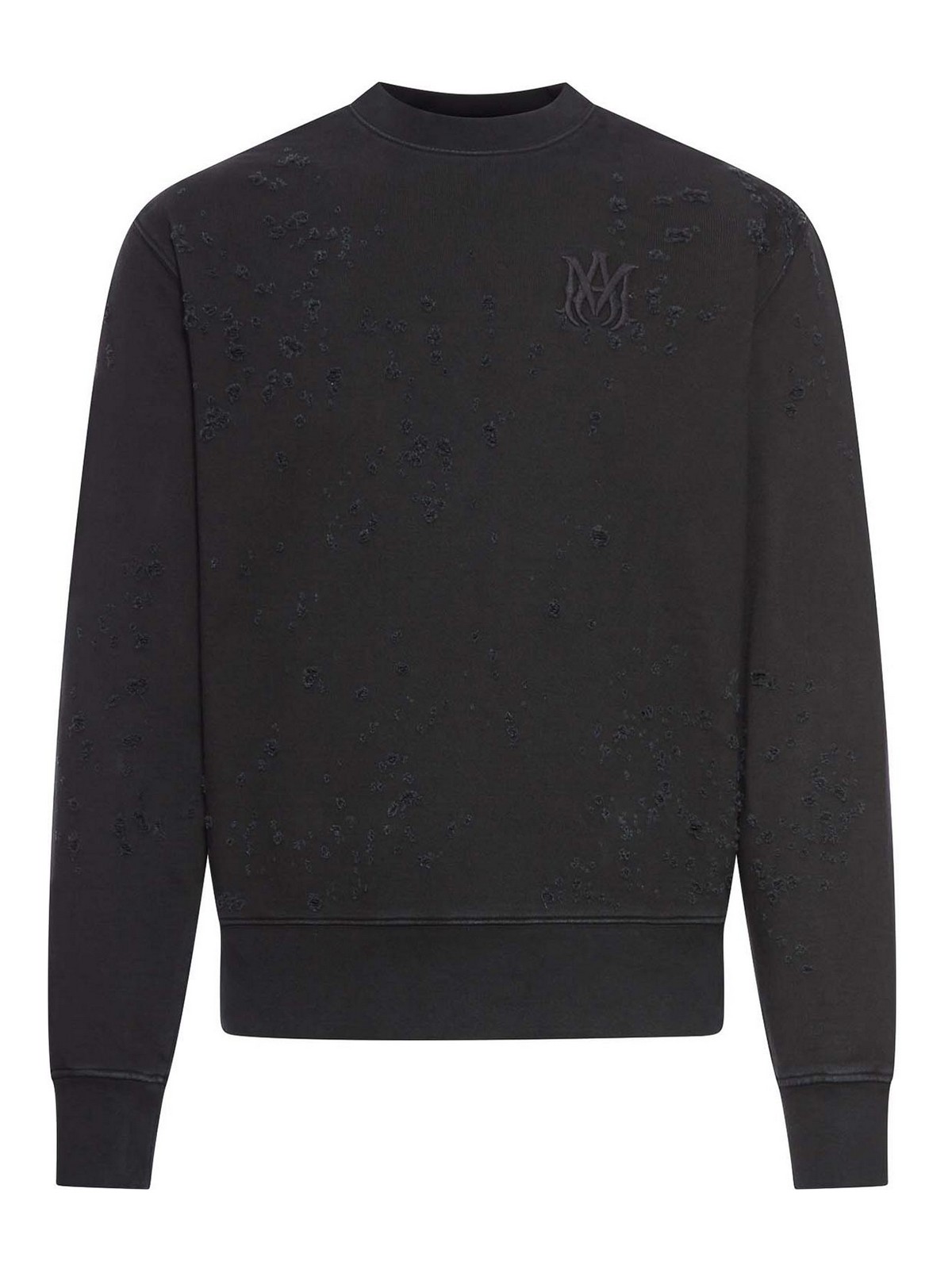 Encolure ras-du-cou longue à effet détruit avec micro-déchirures et trous- logo monogramme ton sur ton- ourlet et poignets côtelés élastiqués- couleur noire