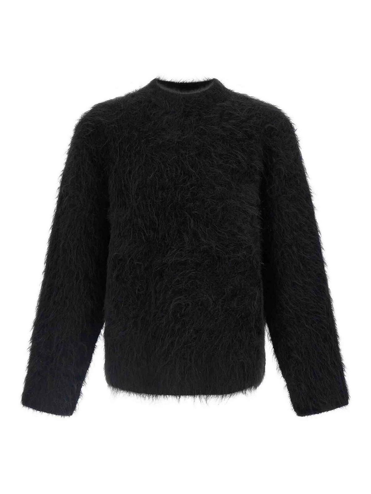 pull haru' tricoté avec un mélange d'alpaga fortement brossé, col cratère, manches longues et épaules tombantes.