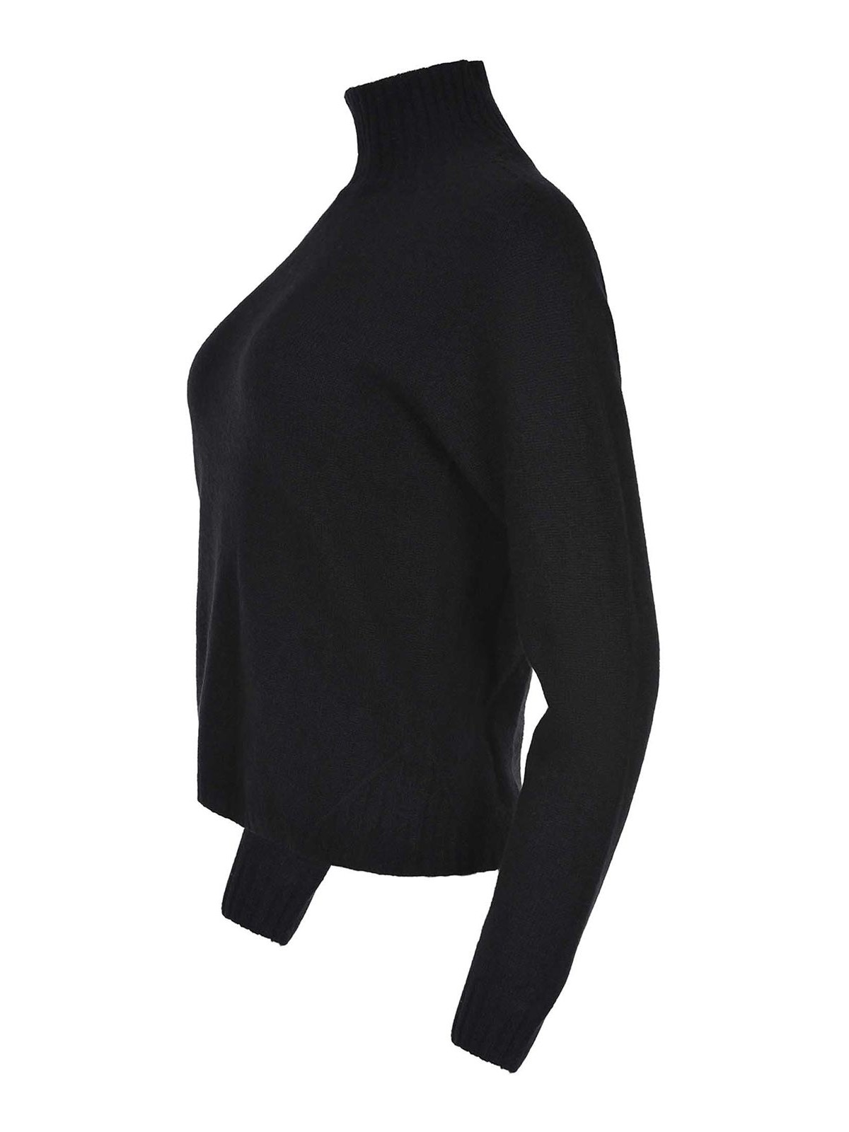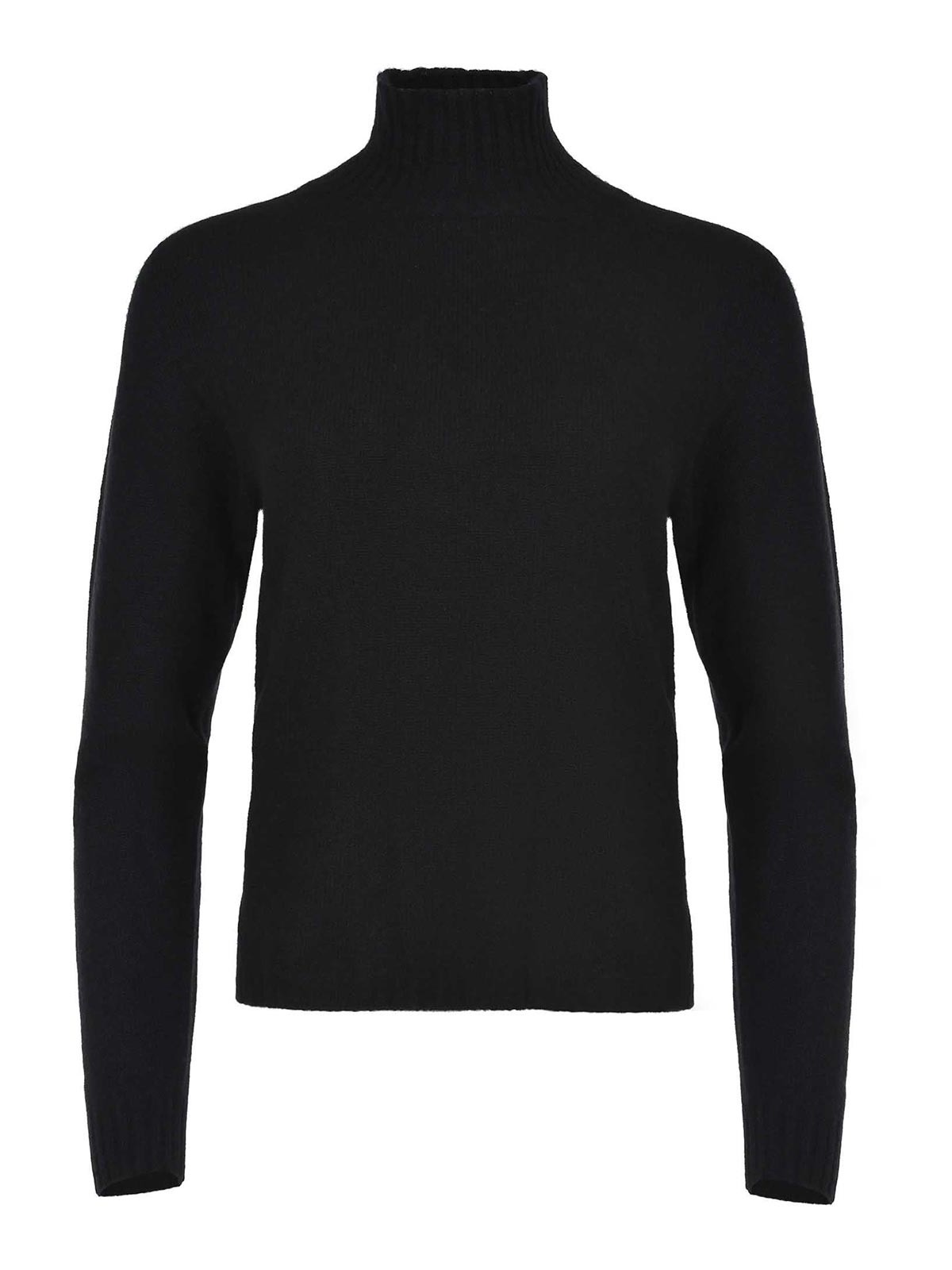 Pull Solotre en mélange de laine et de cachemire de couleur noire. Col côtelé, manches longues, poignets côtelés, 55 % laine, 45 % cachemire. fabriqué en Italie.