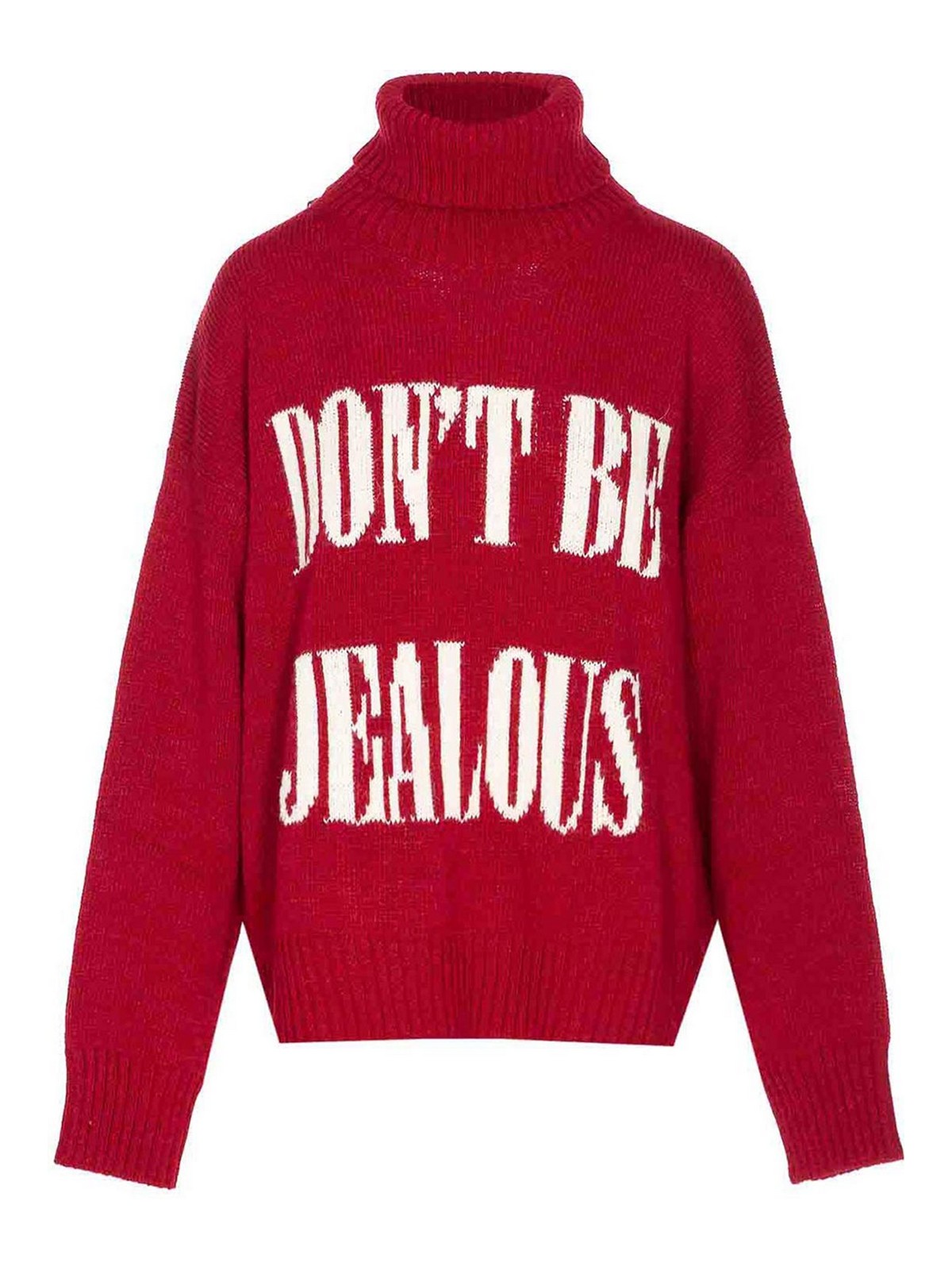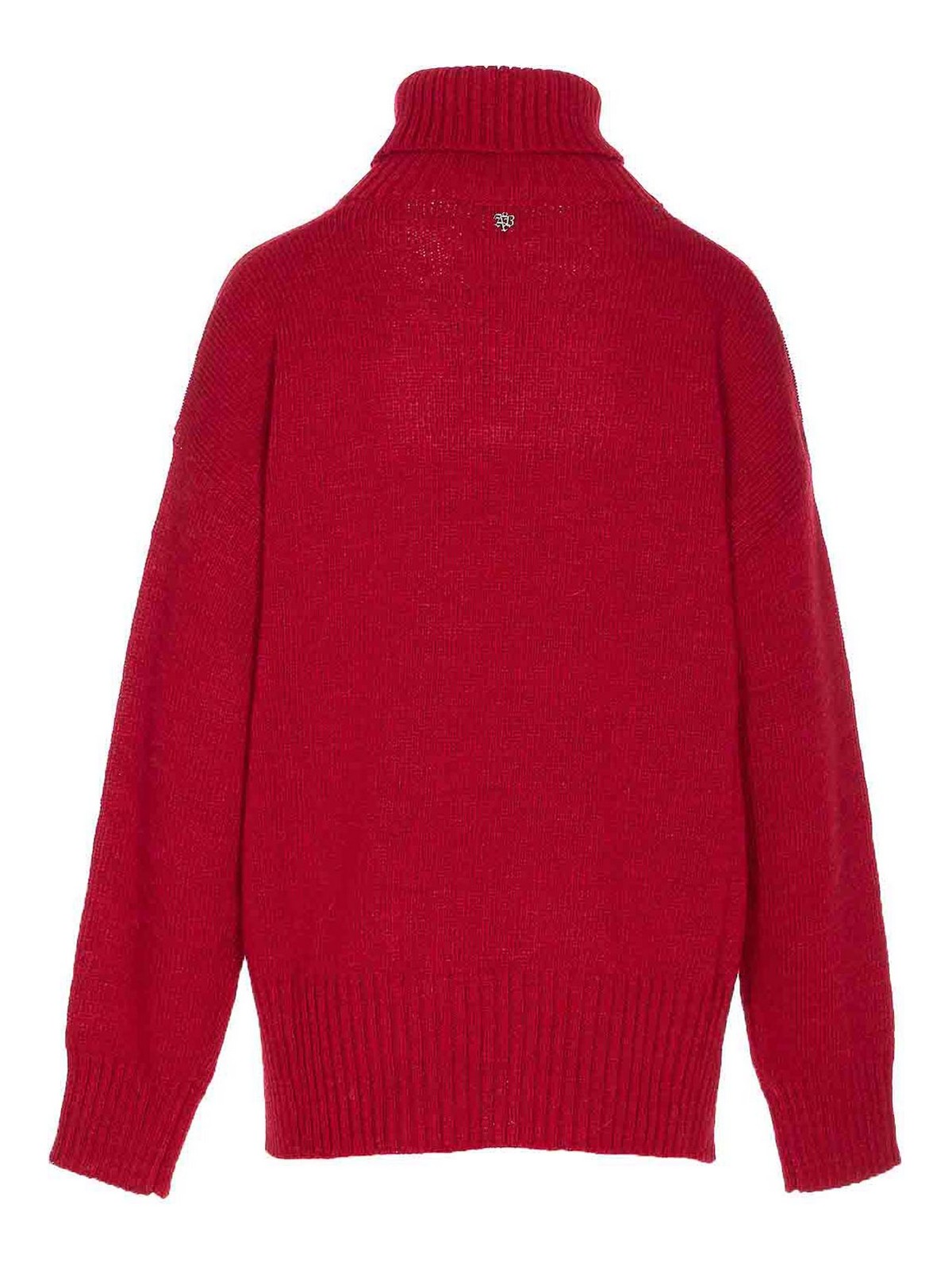 Pull coloré à col roulé rouge Aniye by, col haut, manches longues, brodé sur le devant