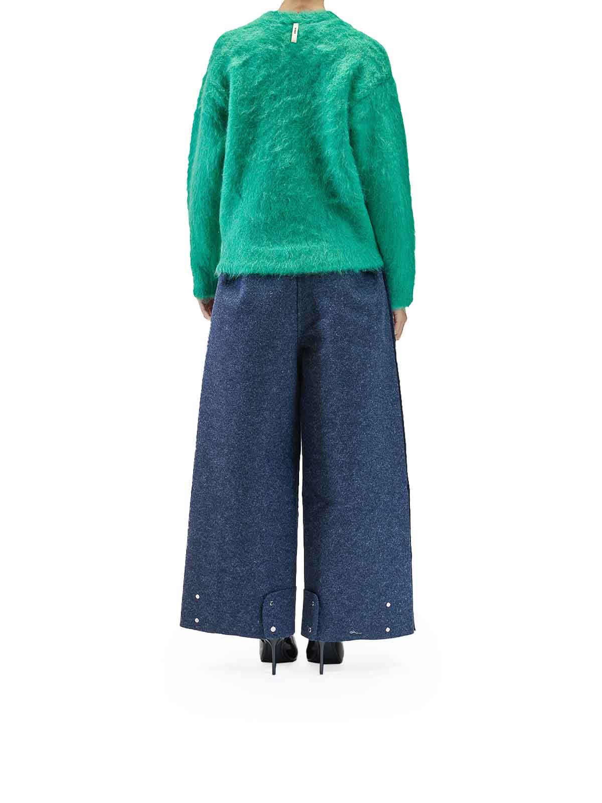 Pull à col rond en tricot poilu vert. Pull à col rond surdimensionné en mohair mélangé avec boucle à logo dans le dos. Col rond, épaules tombantes, ourlet et poignets côtelés. Couleur : vert. 41 % laine d'alpaga, 41 % laine de mohair, 16 % polyamide, 2 % élasthanne. Coupe : surdimensionnée ; pour une coupe plus fine, commandez une taille plus petite.