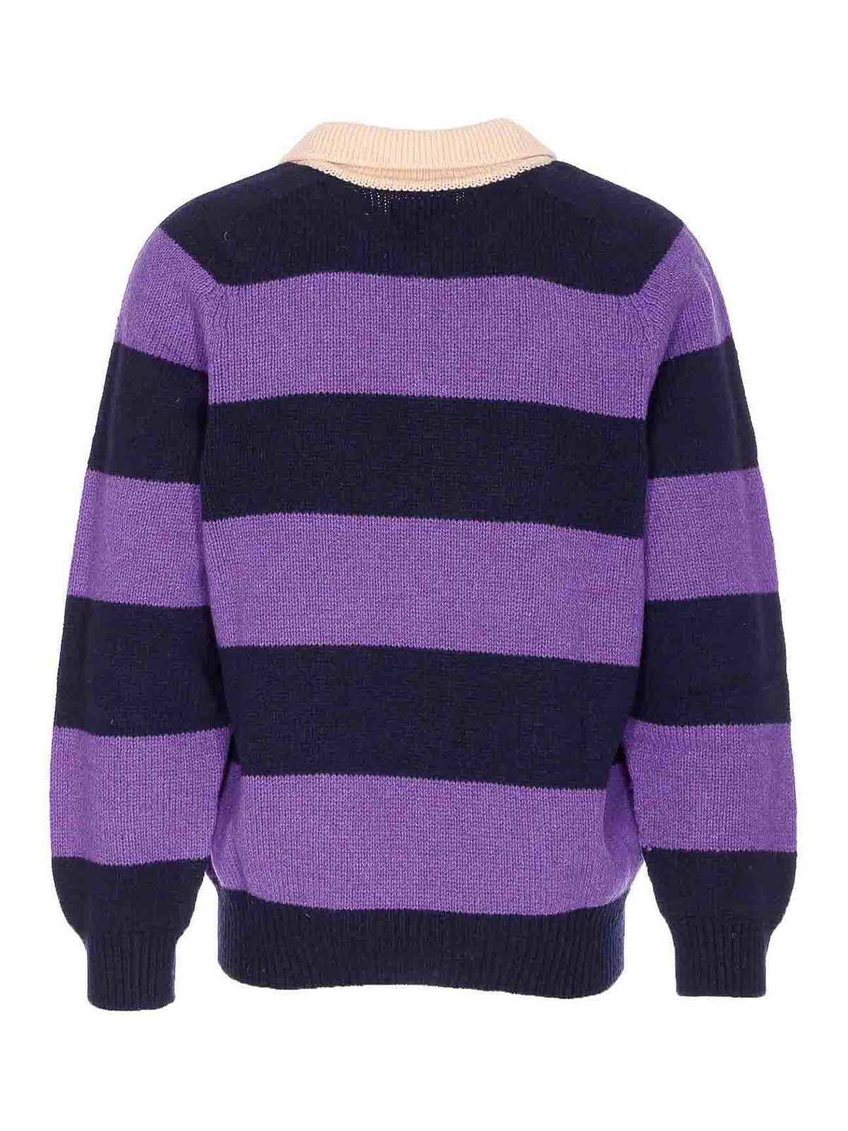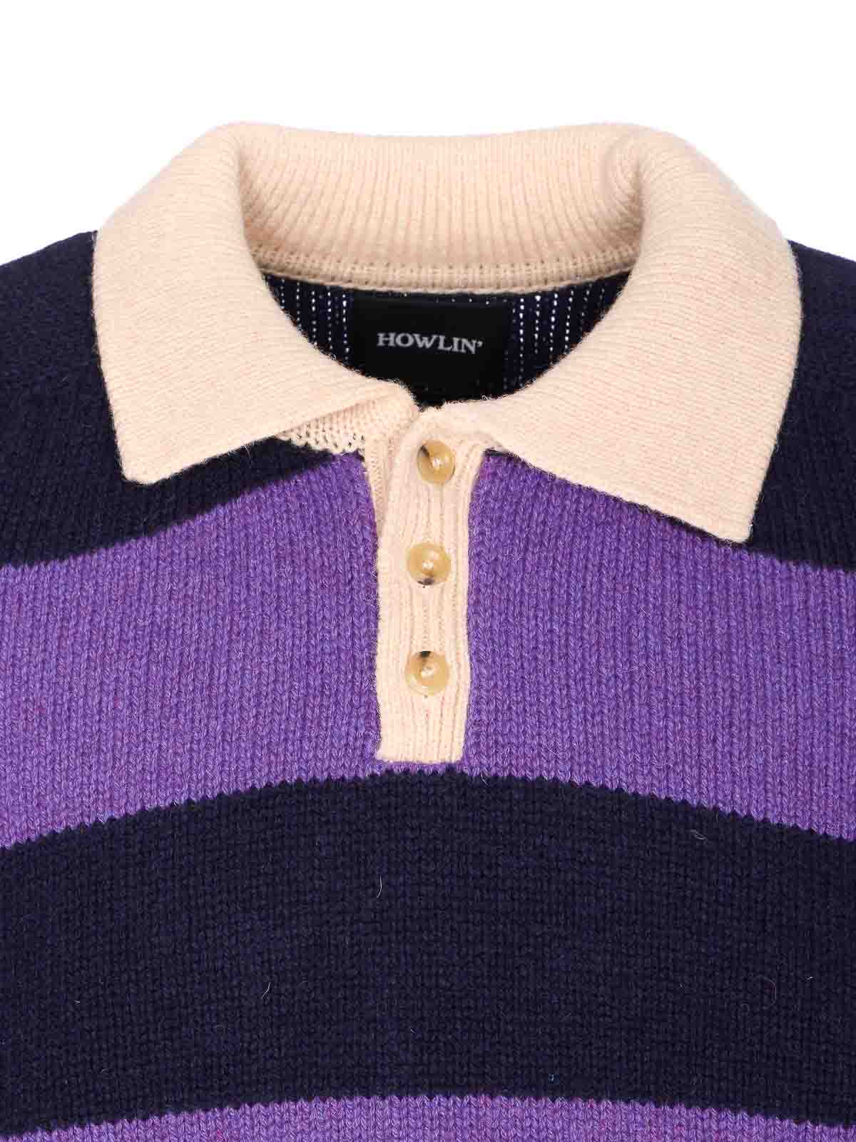 Pull polo Absolute Howlin noir et violet, col rond, fermeture boutonnée, manches longues, rayé