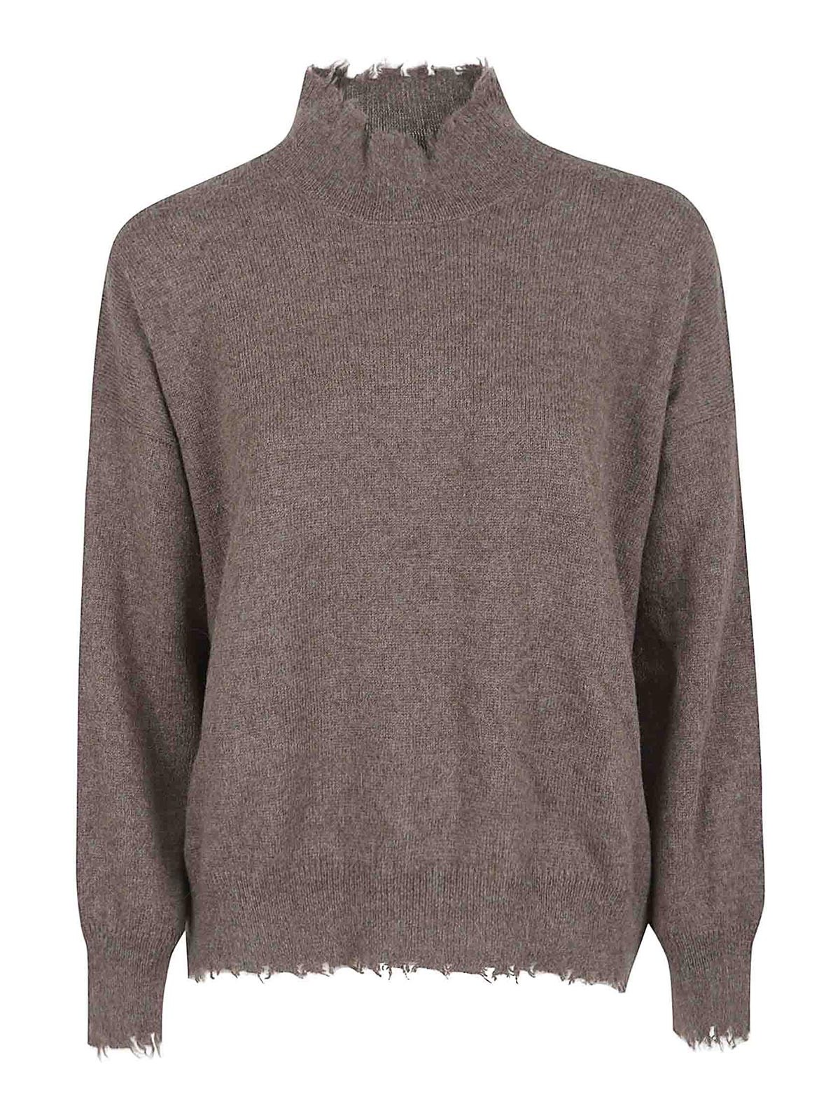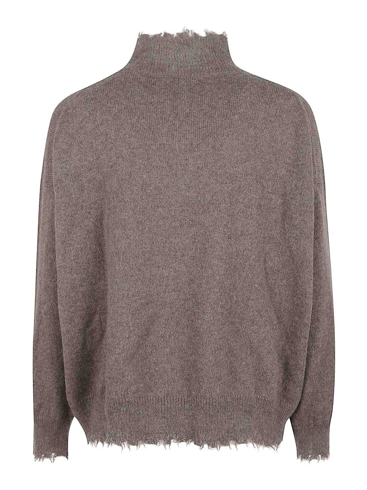 Pull en alpaga Plinio d'Antonelli Firenze avec col haut, manches longues, coupe souple avec épaules tombantes, poignets et bas élastiques côtelés, caractérisé par des finitions à effet vieilli.