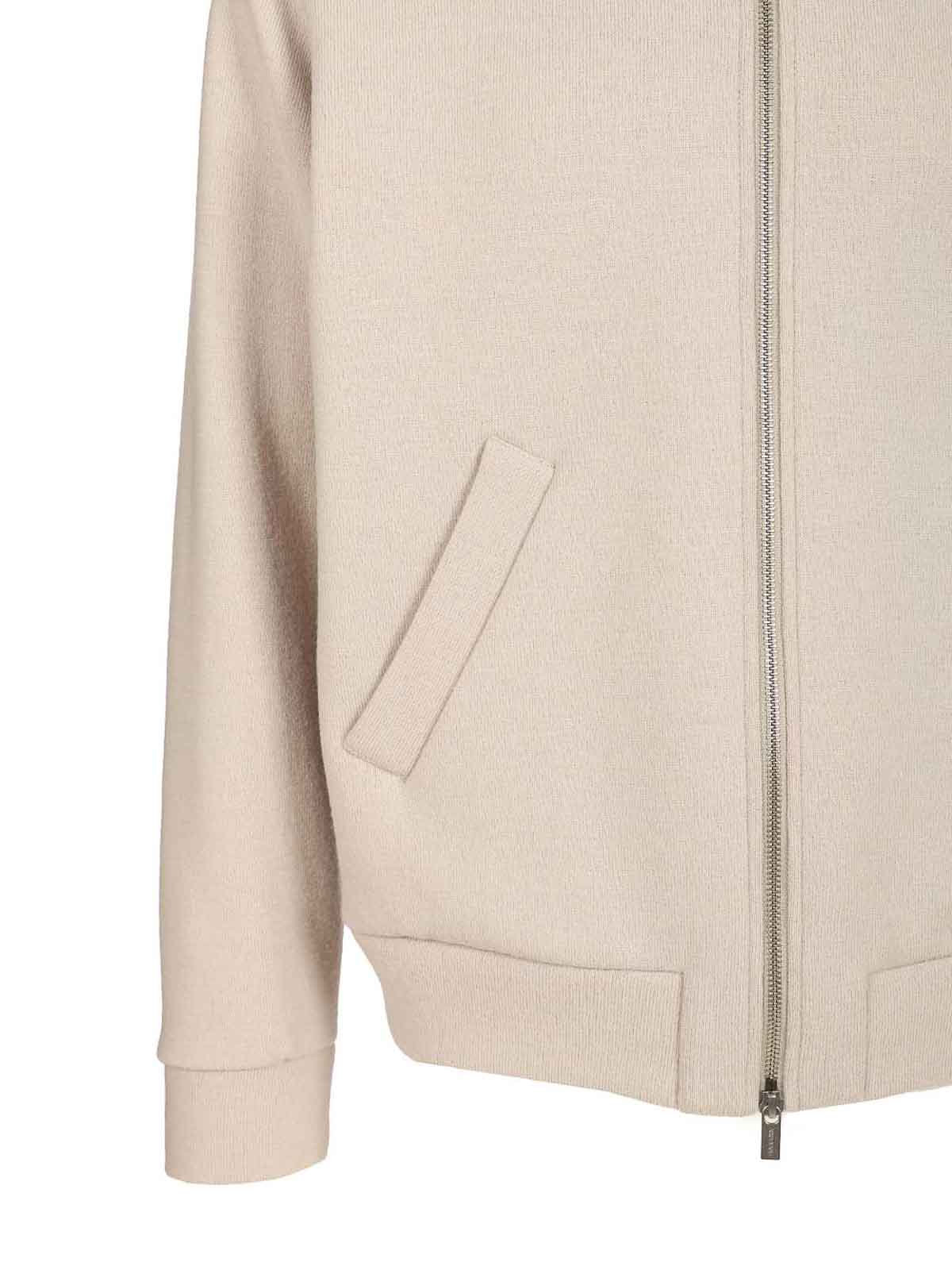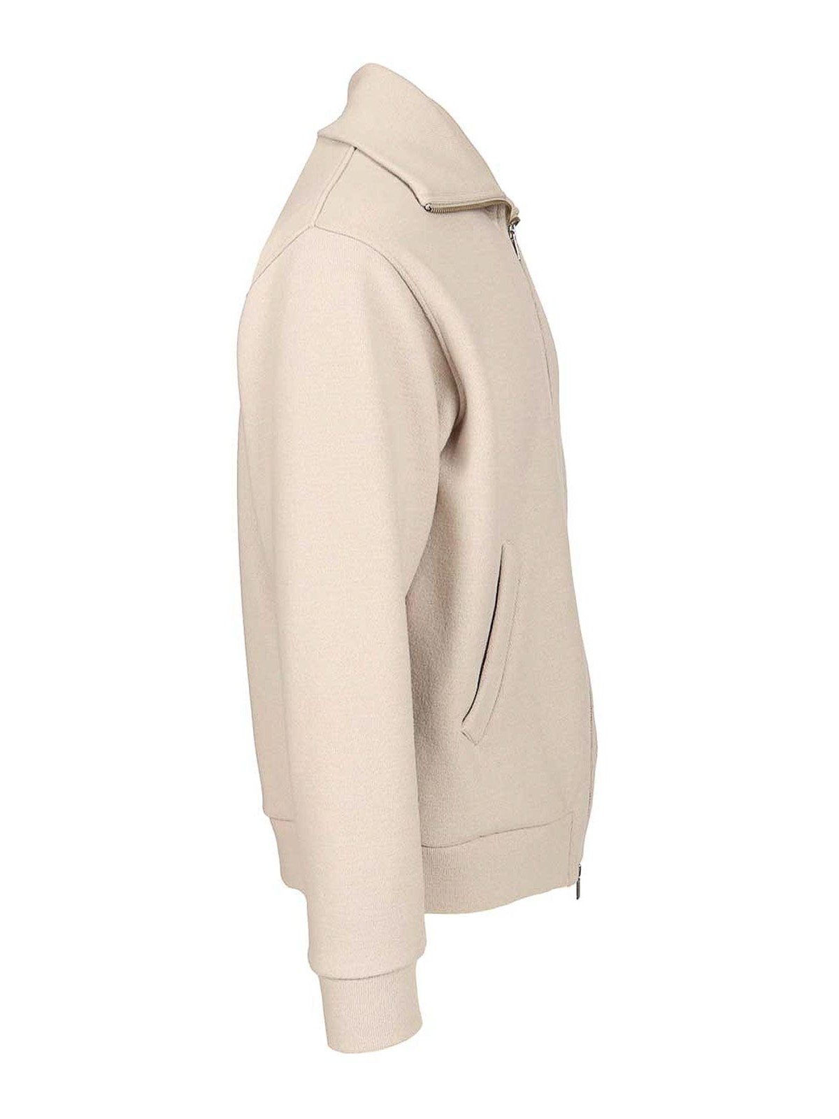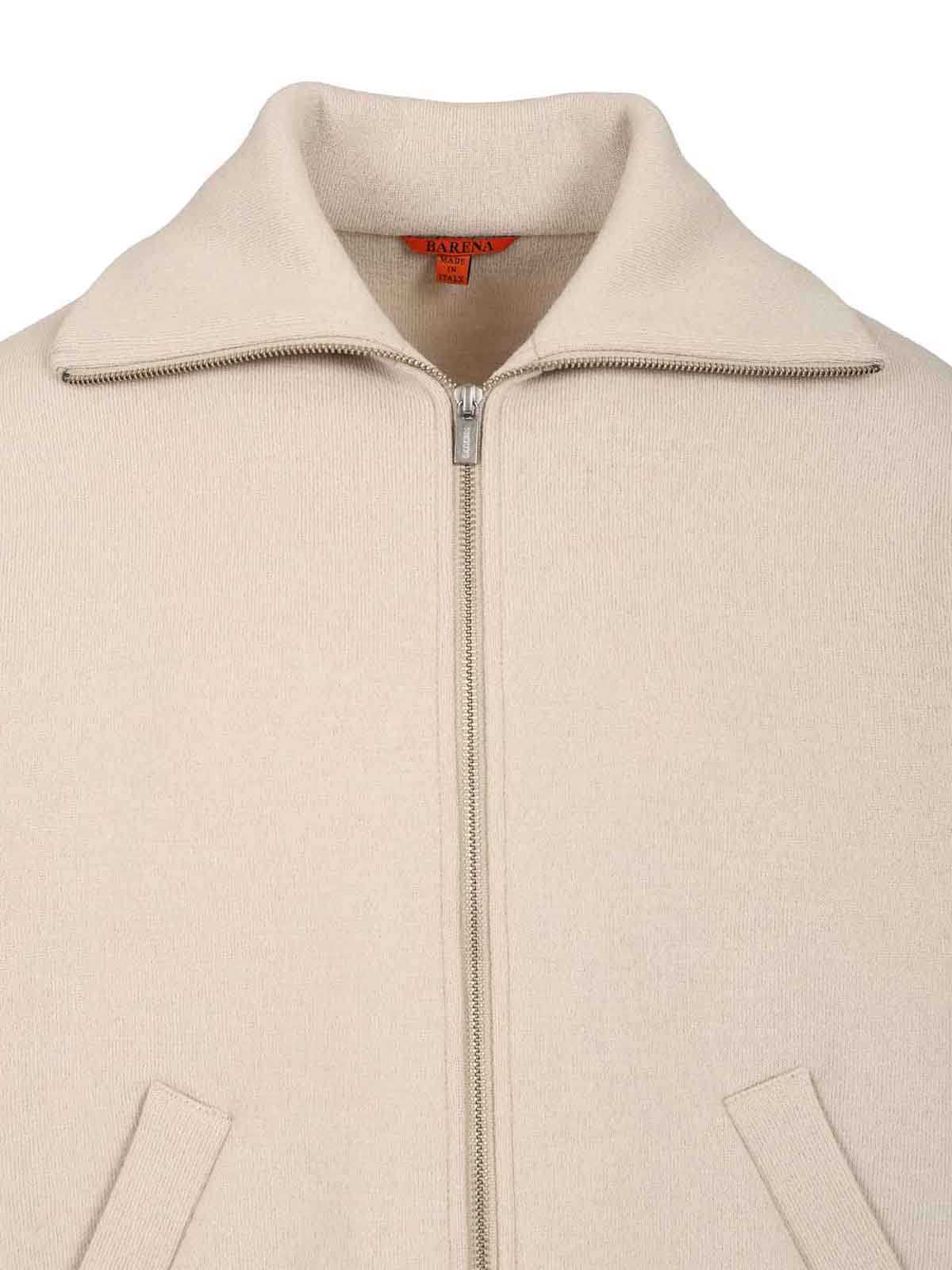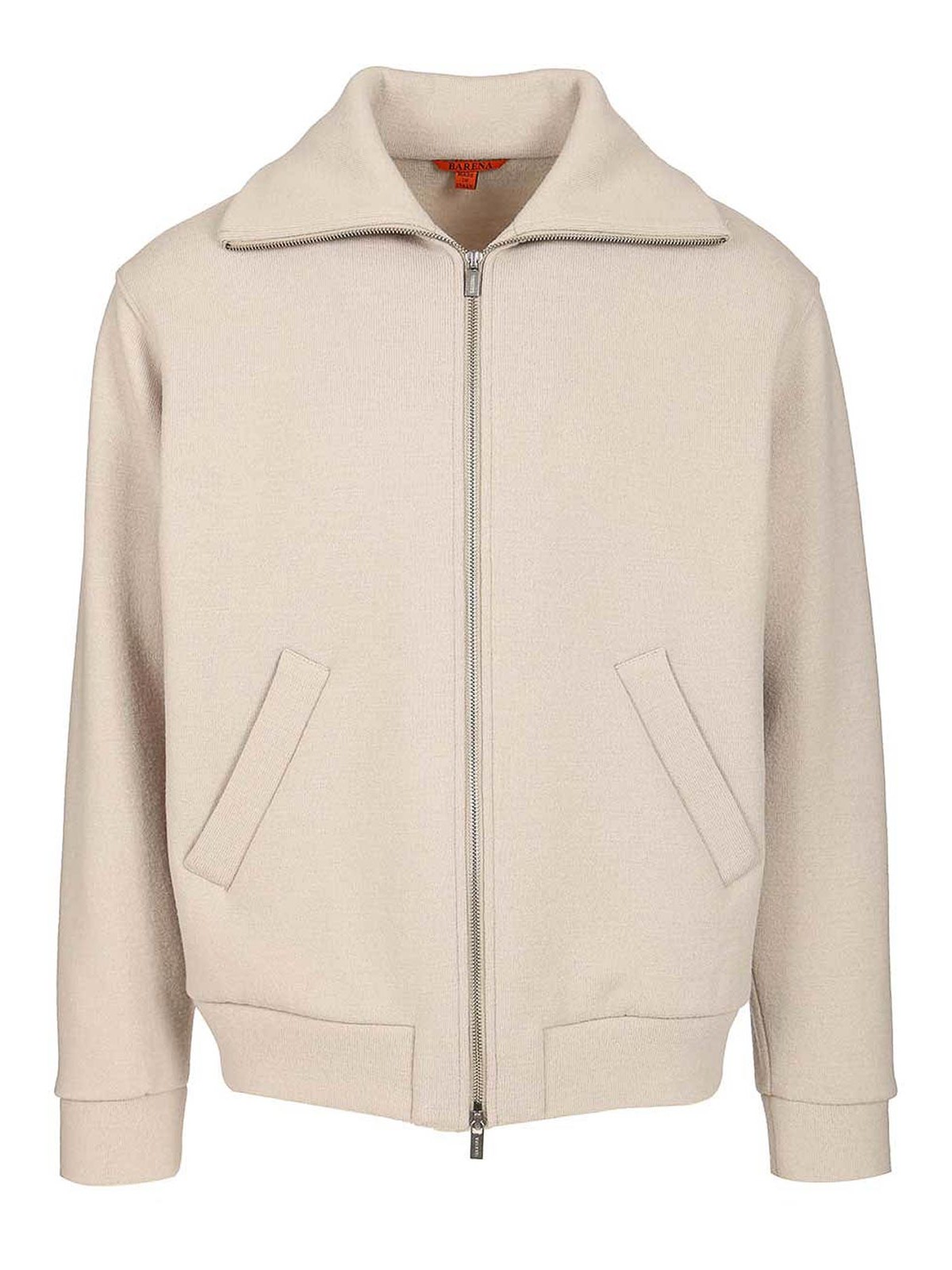 Blouson Alon Lanoso en double de la marque Barena avec col montant, poches latérales, fermeture éclair bidirectionnelle, poignets côtelés et ourlet, tirette zippée personnalisée avec le logo Barena