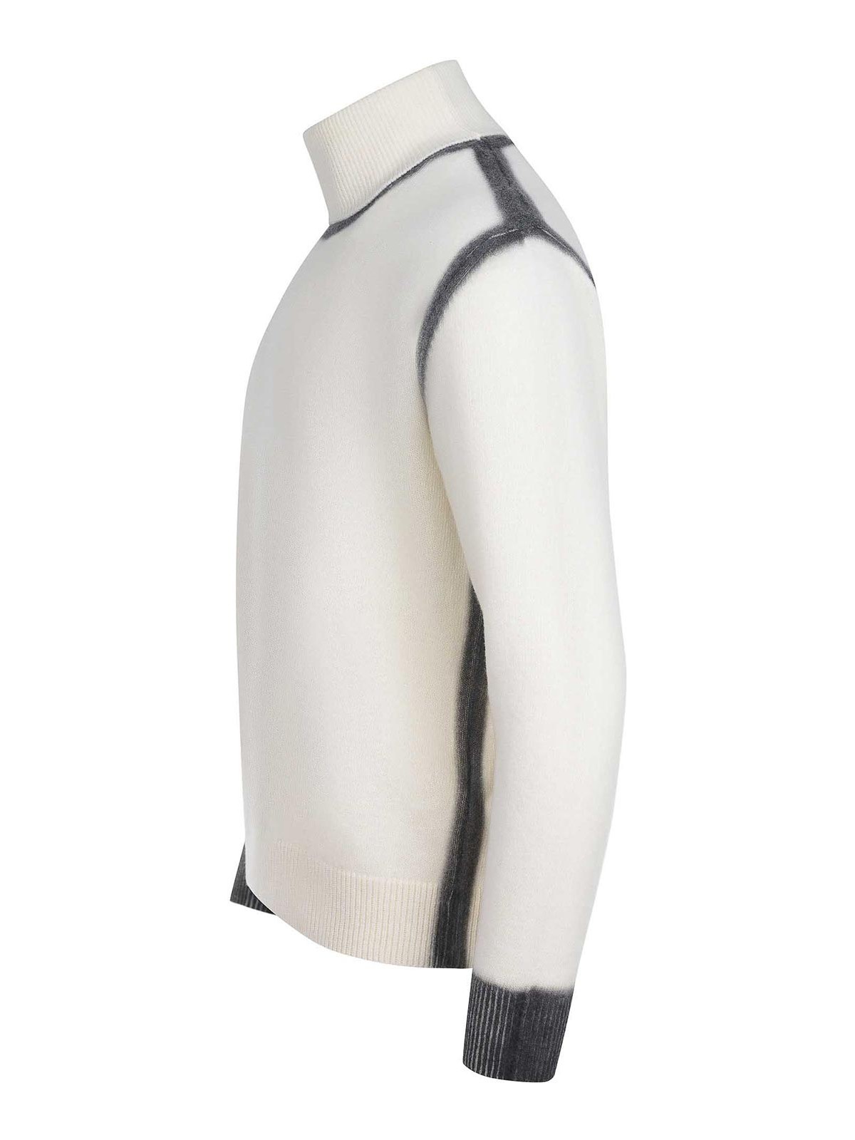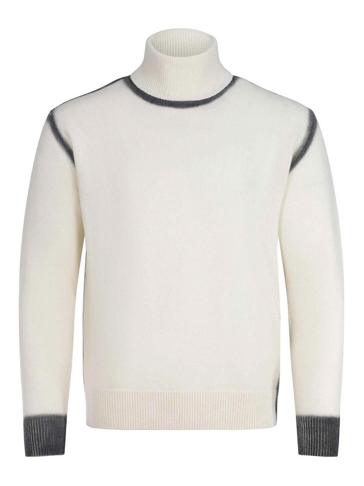 Dolcevita Atomo Factory en laine mélangée de couleur crème, col haut côtelé, manches longues, détails de finition contrastants avec effet dégradé, poignets et ourlet côtelés, 80 % laine, 20 % polyamide fabriqué en Italie