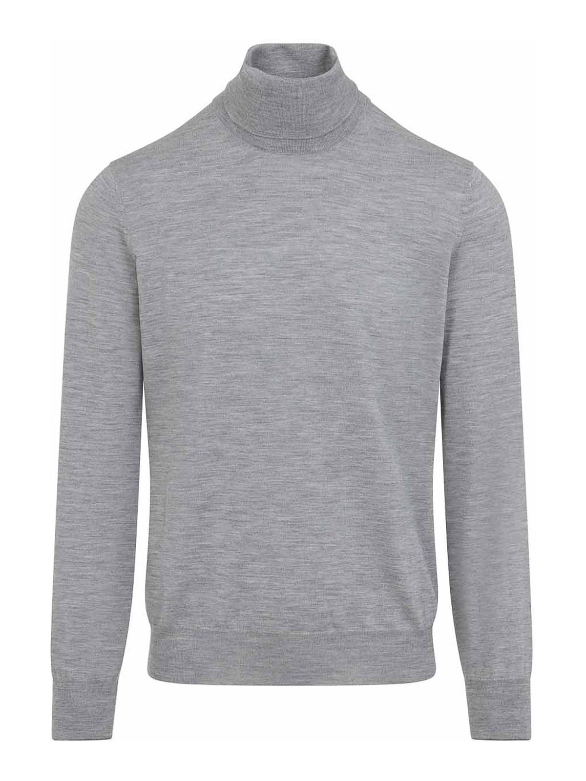 Col roulé gris moyen Brunello Cucinelli en maille côtelée, col, manches longues, poignets côtelés et ourlet côtelés, ourlet droit