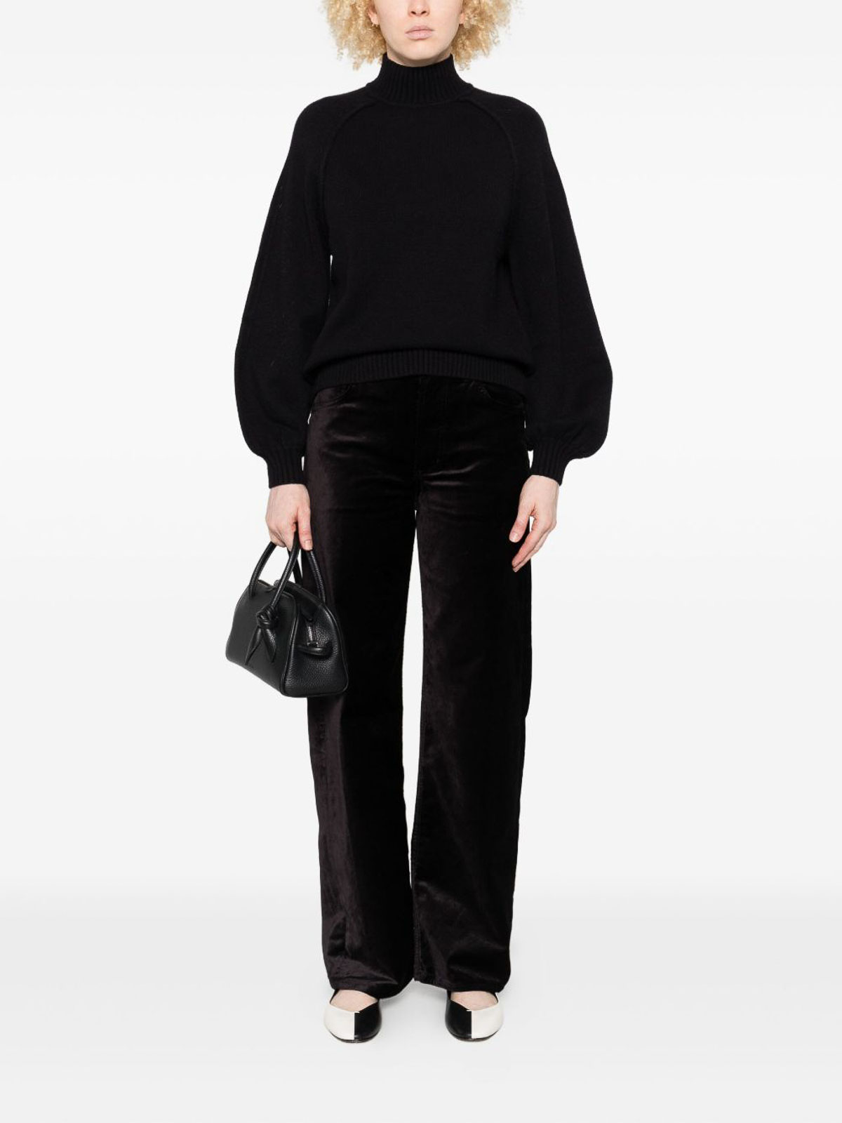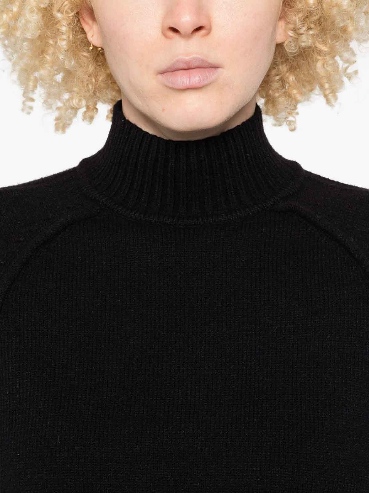 Col roulé noir, manches bouffantes, poignets côtelés, ourlet côtelé