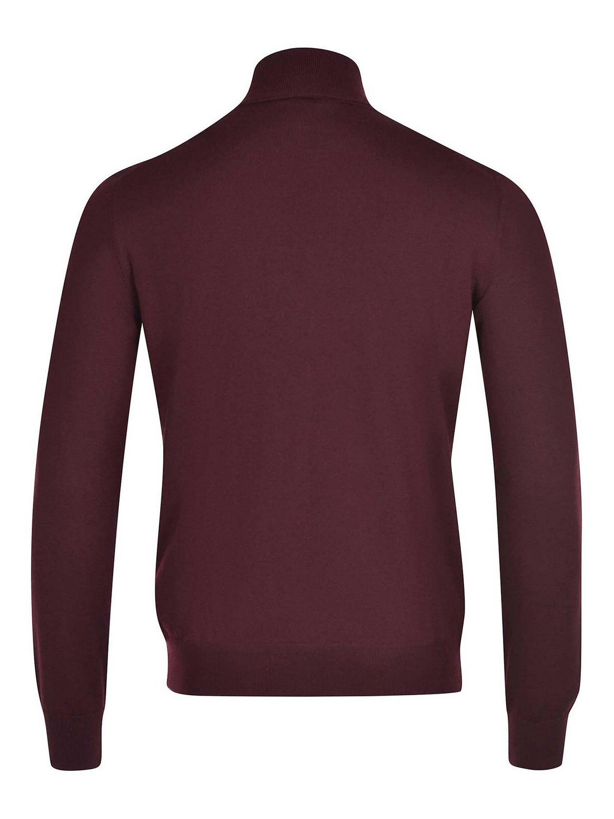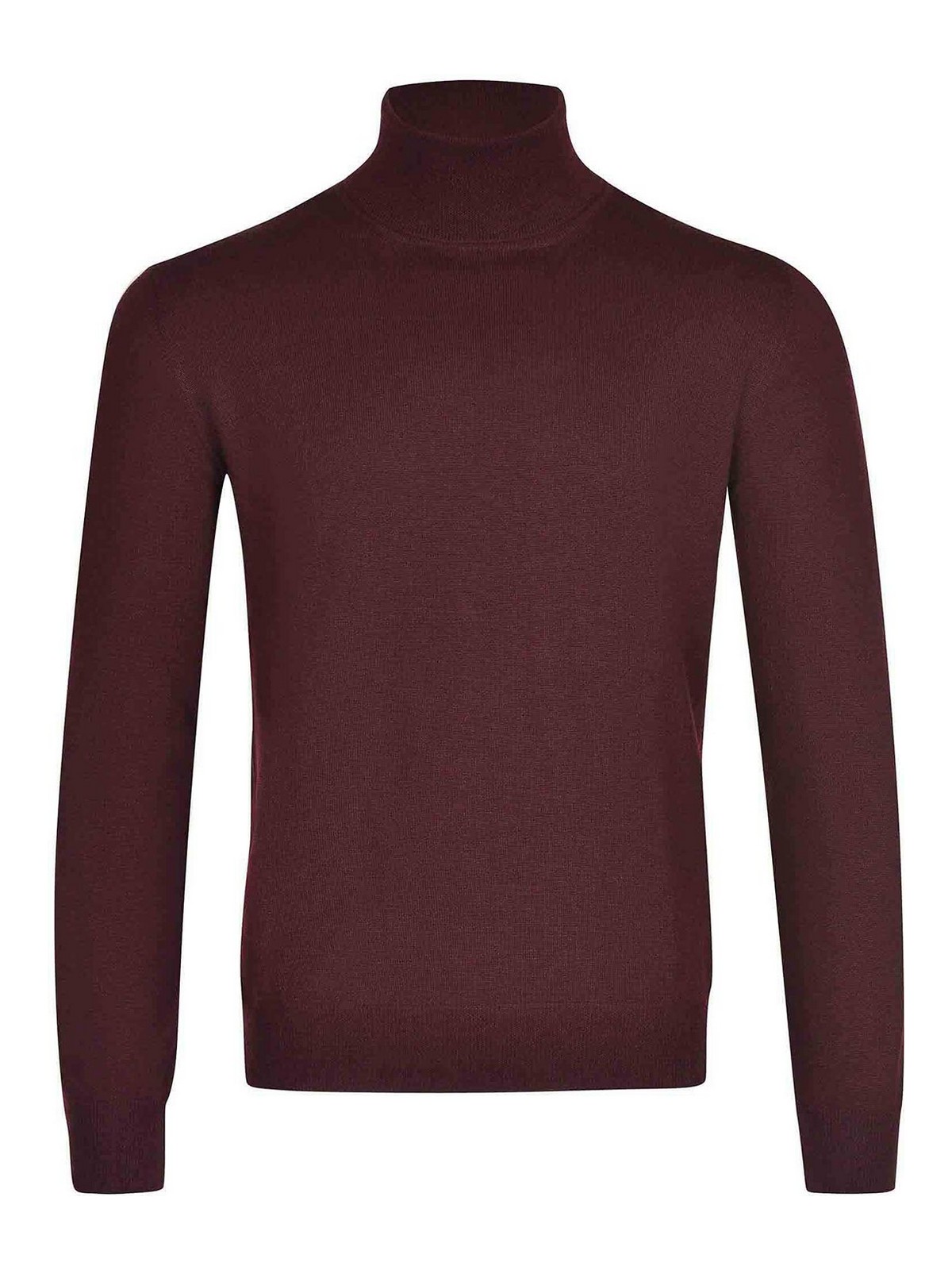 Tagliatore Dolcevita en laine couleur vine. col montant. manches longues. Poignets et ourlet côtelés. 100 % laine vierge. fabriqué en Italie