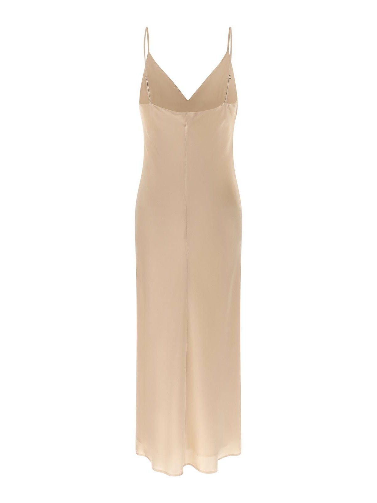Robe midi charmeuse en soie Seridie avec slip à silhouette évasée, bretelles réglables, sans manches, large col en V sur le devant et dos carré.