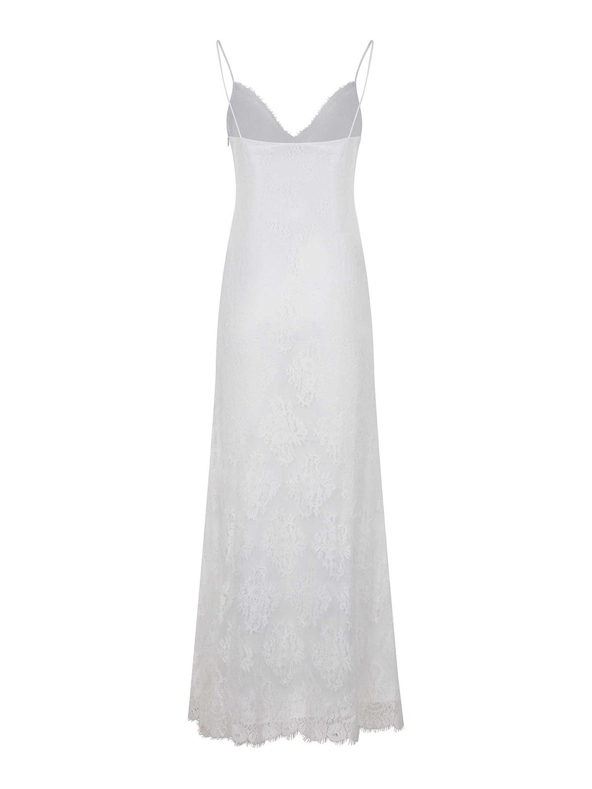 Robe autoportrait en coton mélangé blanc. entièrement en dentelle. col en V. fines bretelles. détail de nœud ton sur ton sur la poitrine. fermeture par zip et crochet latéral. Doublure. 54 % coton 46 % polyamide.