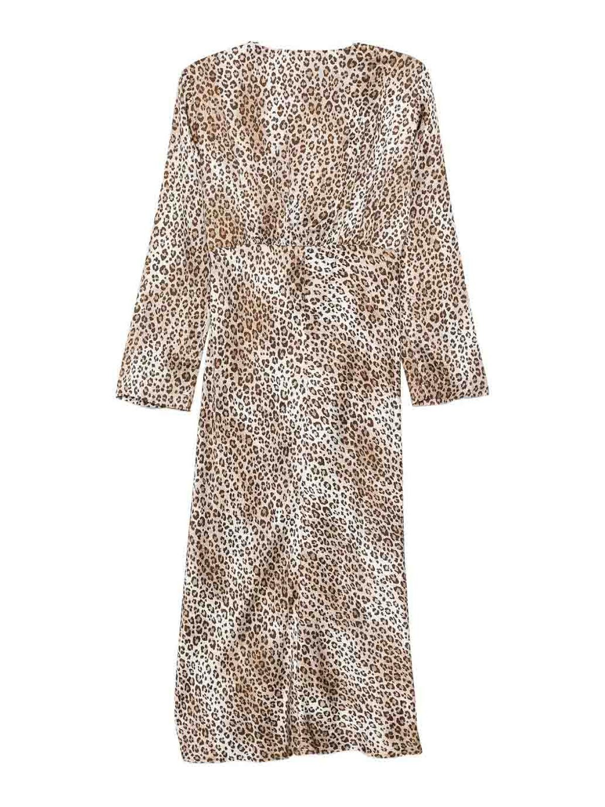 Cravate mi-longue à manches longues et col en V à imprimé léopard marron