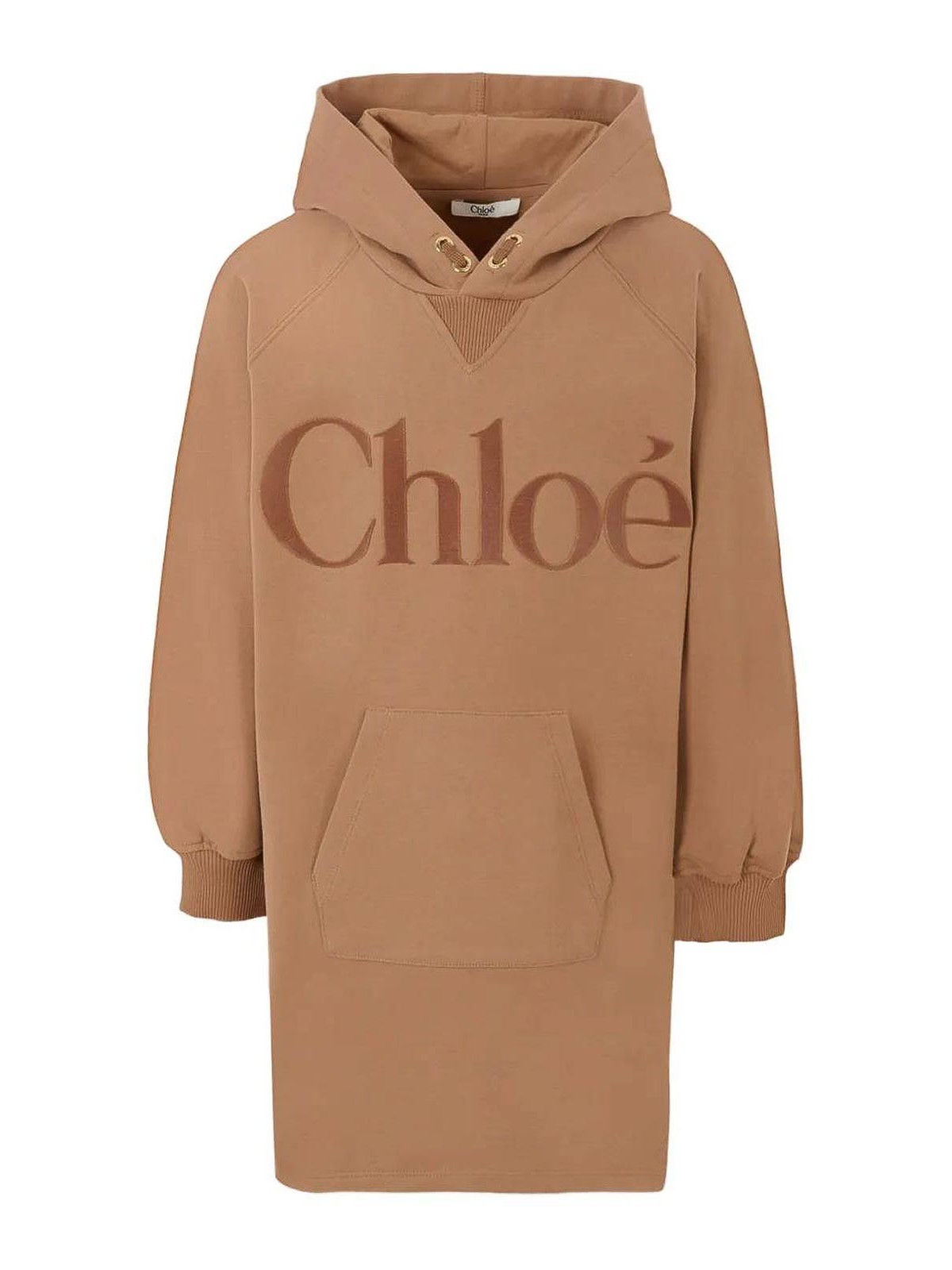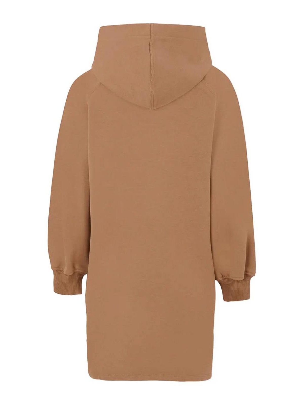 Robe à logo marron, encolure à capuche avec logo, poche plaquée, manches longues avec poignets