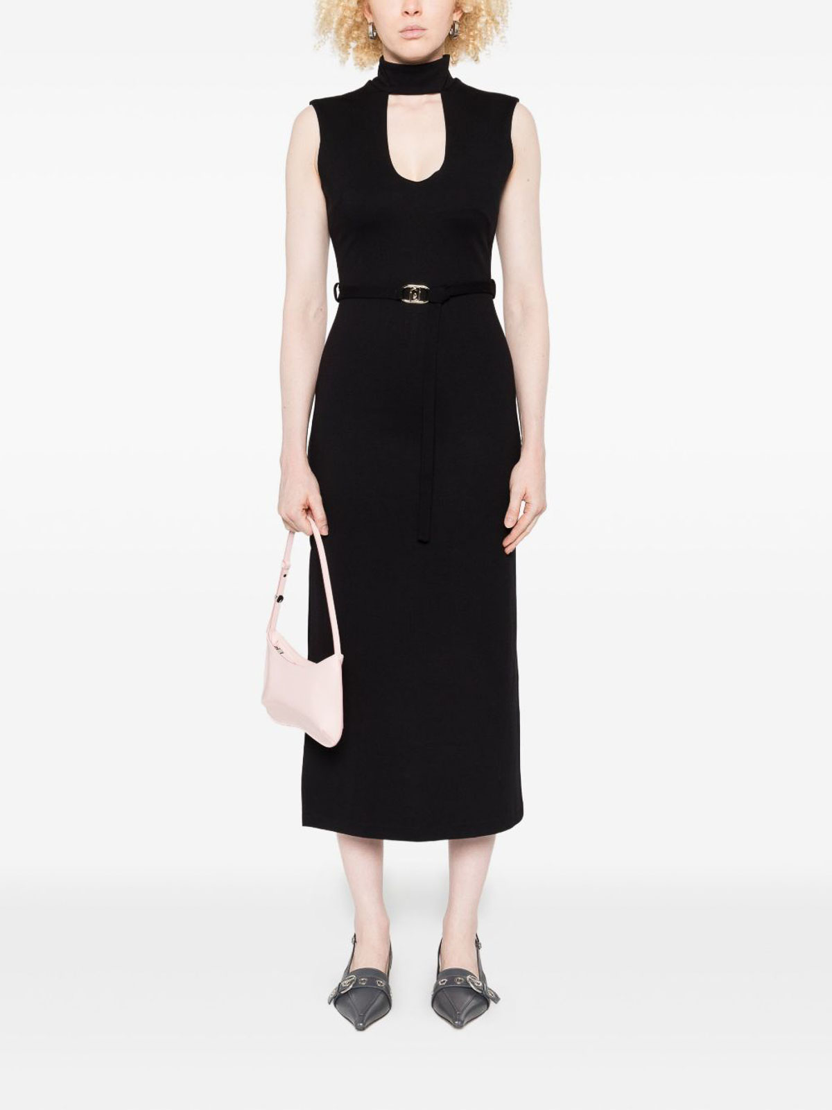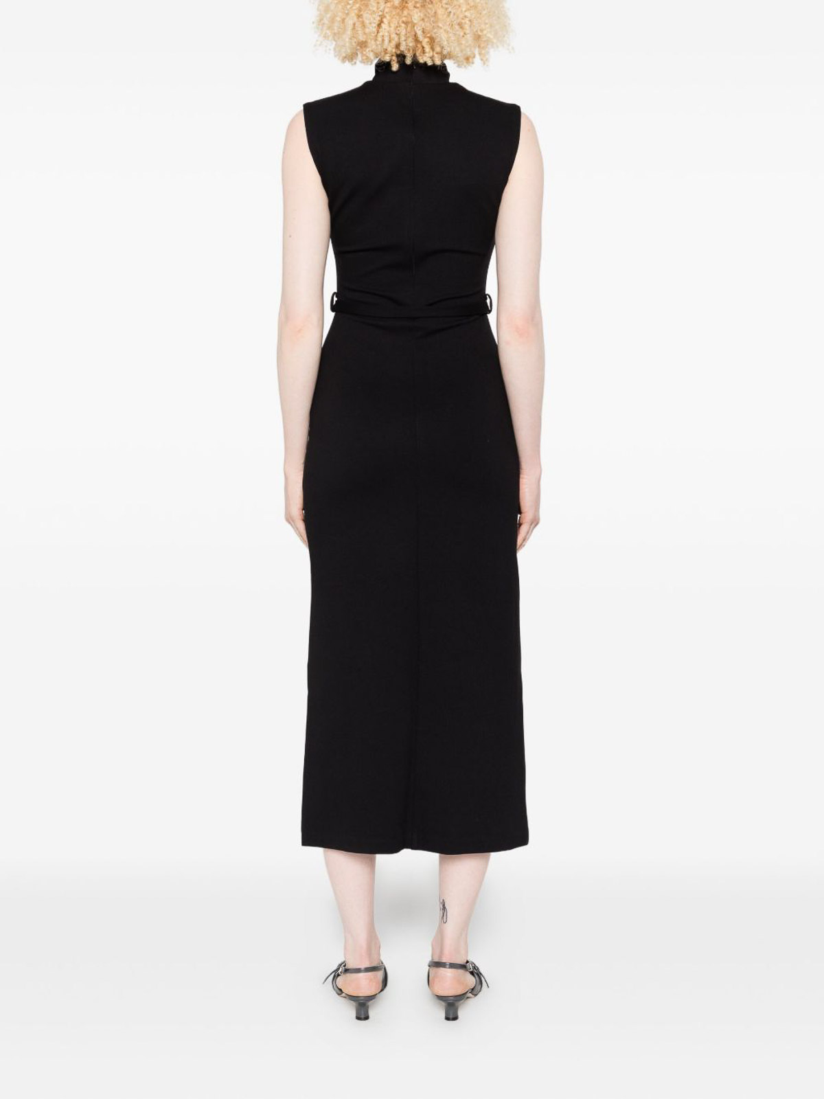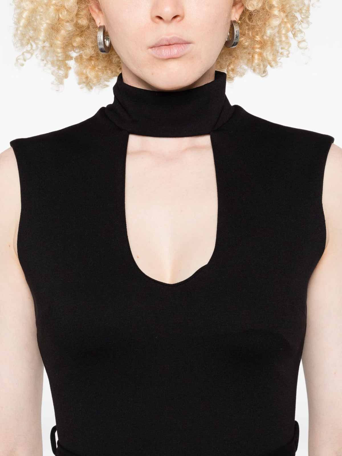 Encolure à trou de clé noire, taille ceinturée sans manches