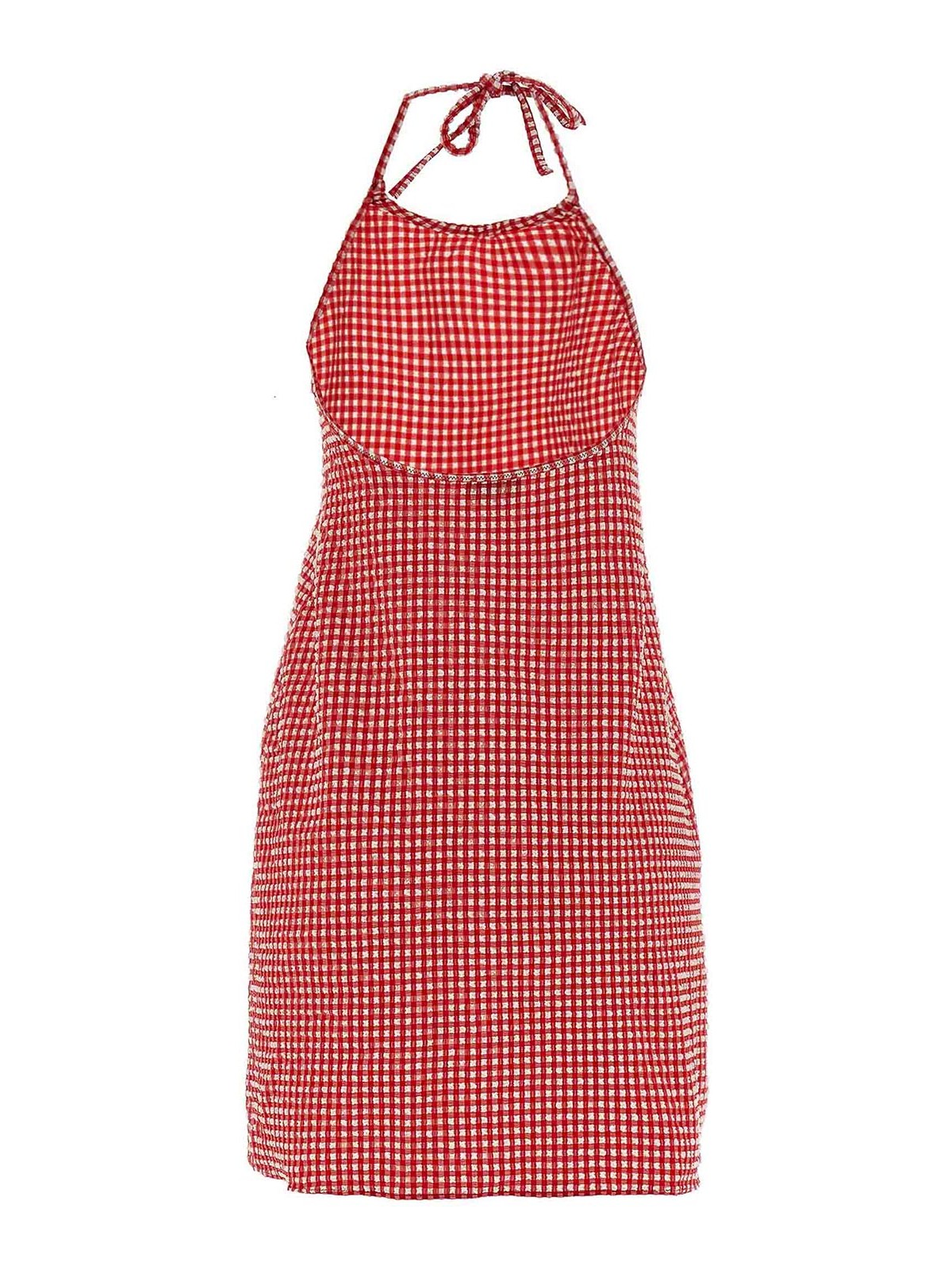 Mini-robe en tissu stretch avec fermeture « vichy » et lien à nouer à l'arrière du cou.