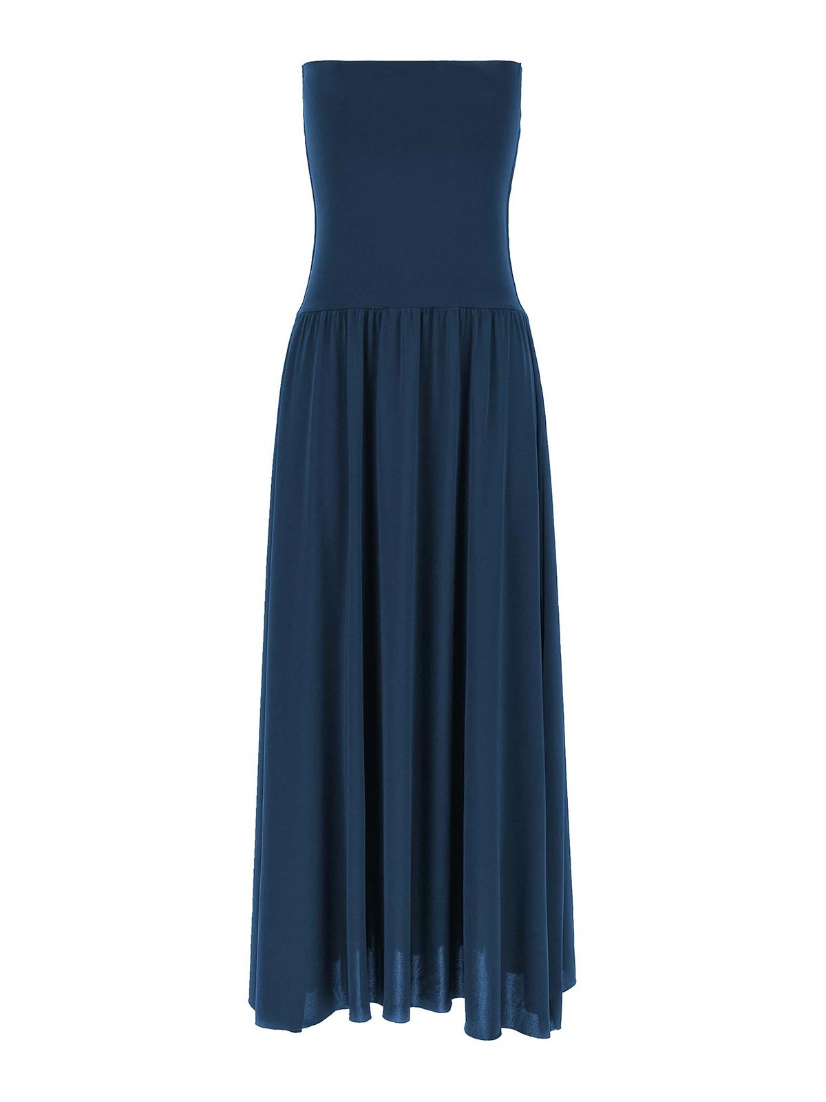 Robe longue « Koda » en peau douce* et jersey crêpe fluide, ourlet brut, bande élastique, style corset pouvant également être portée en jupe.