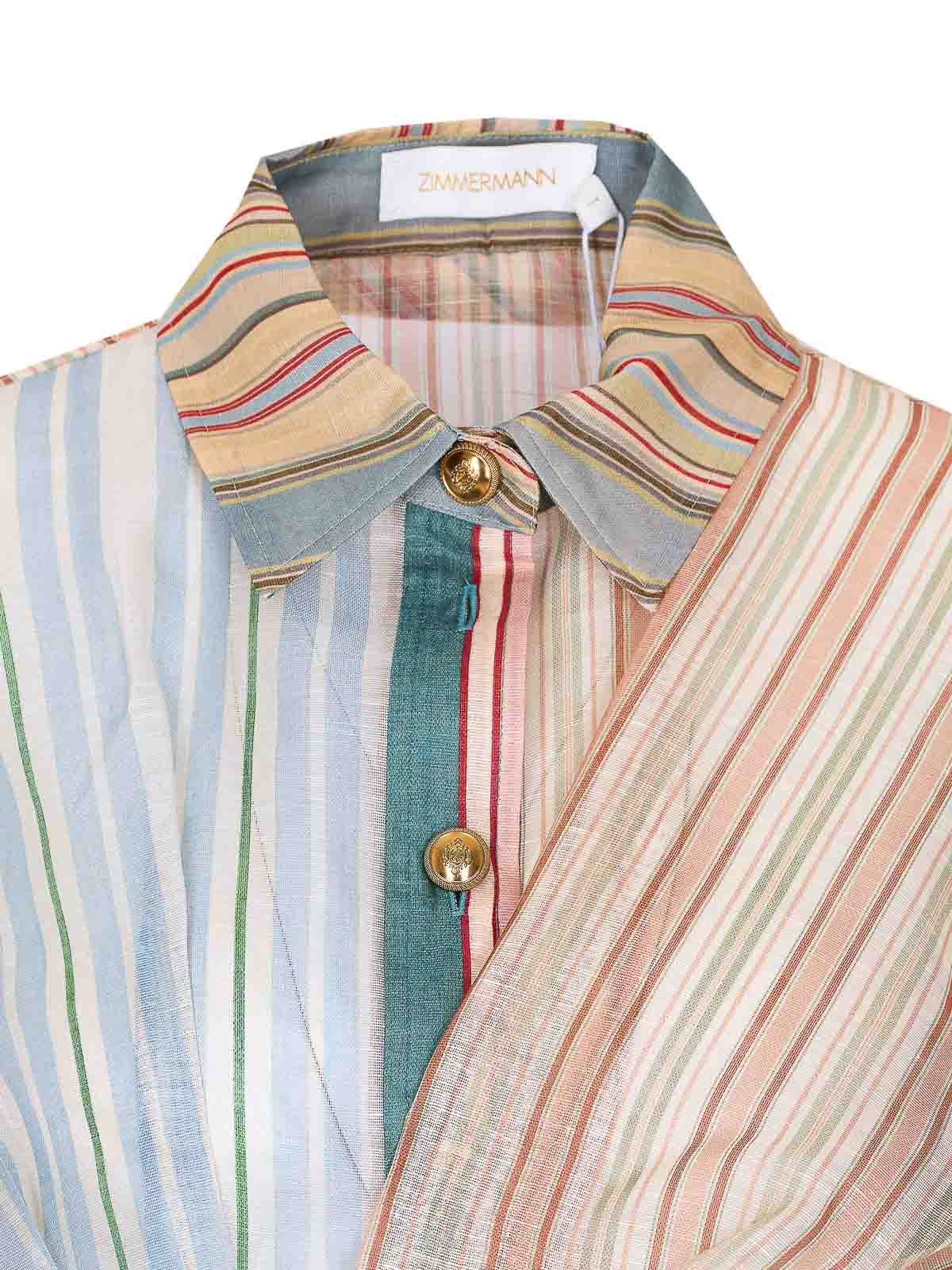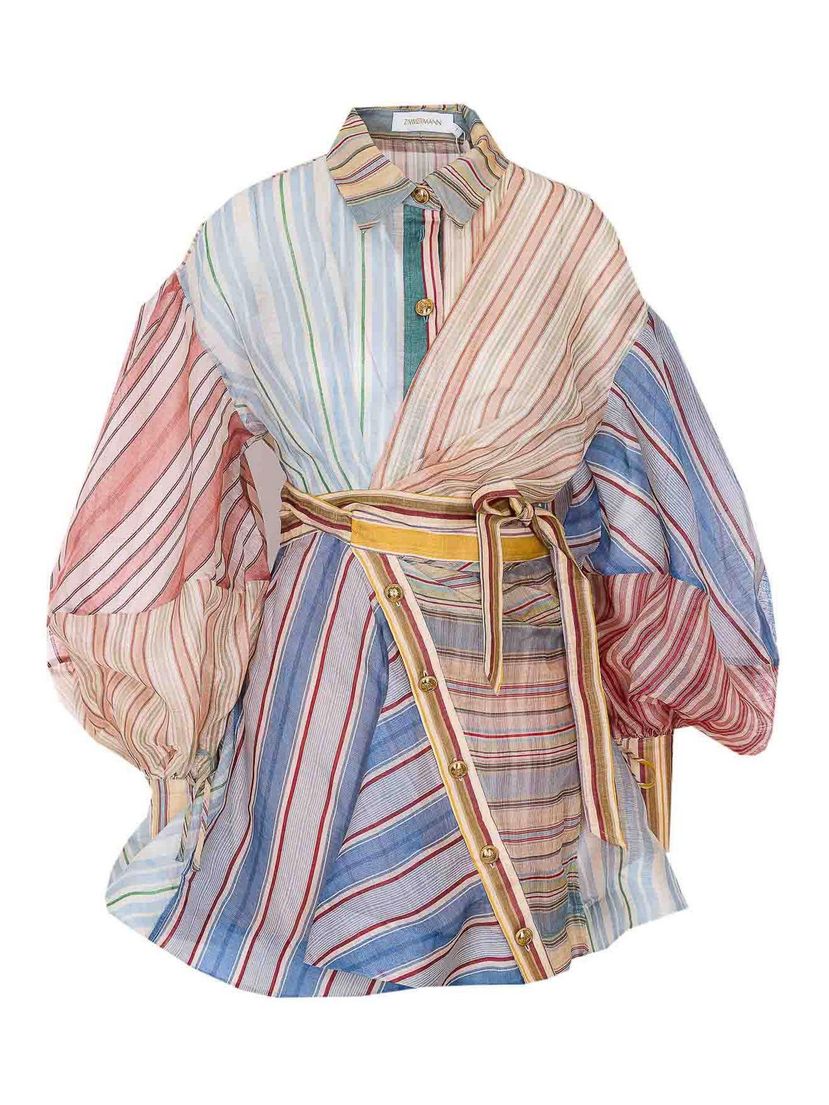 Mini-robe à rayures Rebelion multicolores Zimmermann, fermeture boutonnée, col régulier, manches longues, nœud sur les poignets, fermeture portefeuille asymétrique sur le devant