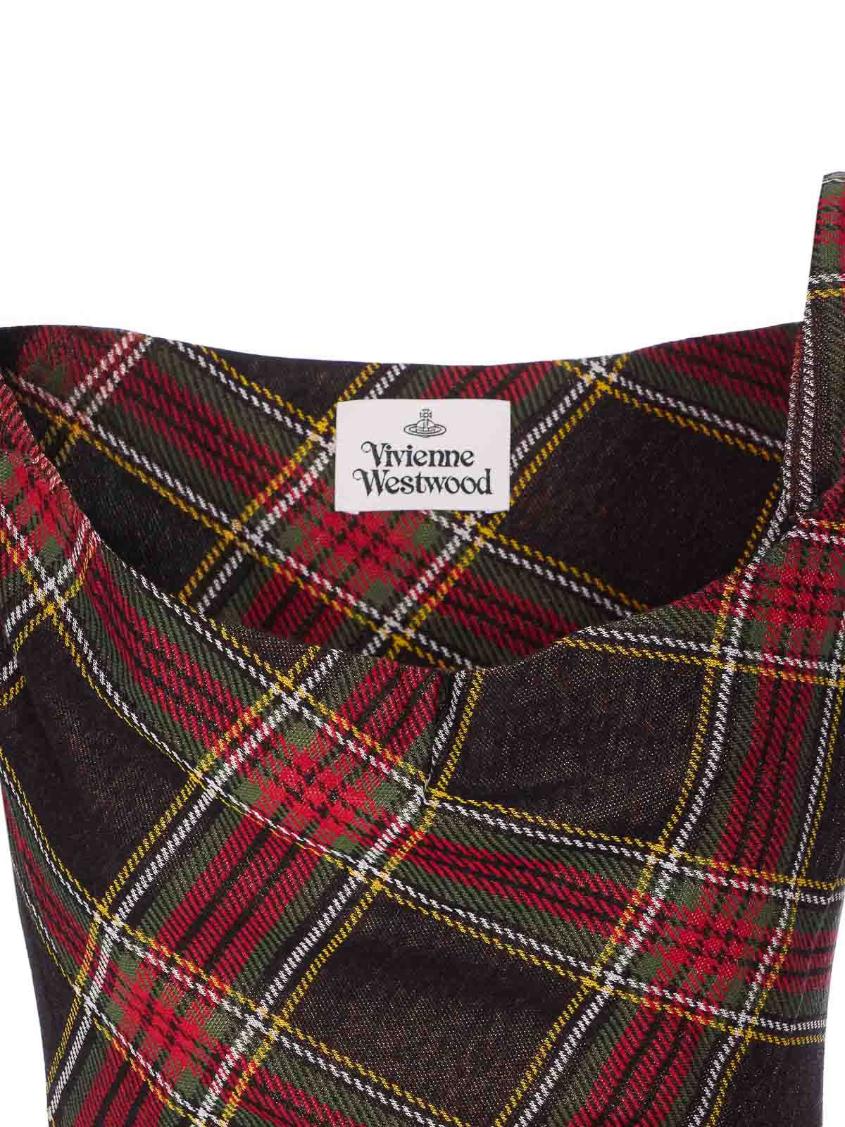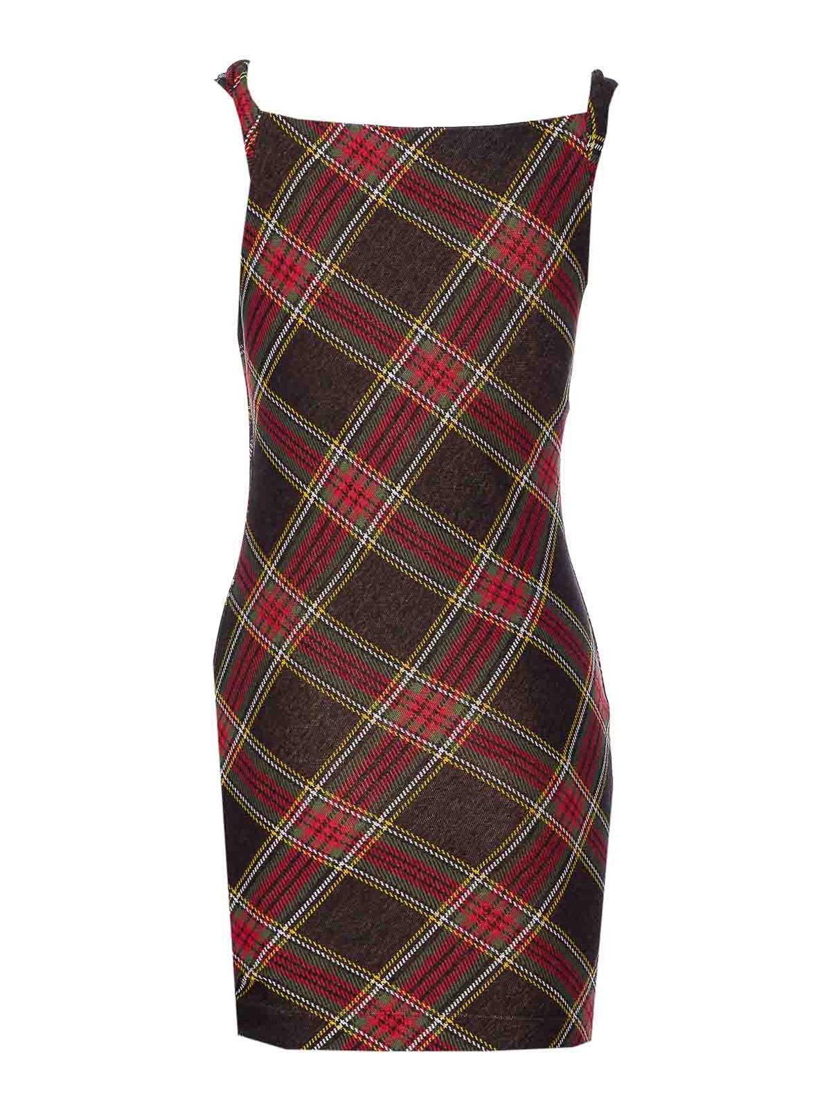 Robe crayon Anna rouge et verte Vivienne Westwood, motif tartan, sans manches, coupe élastiquée