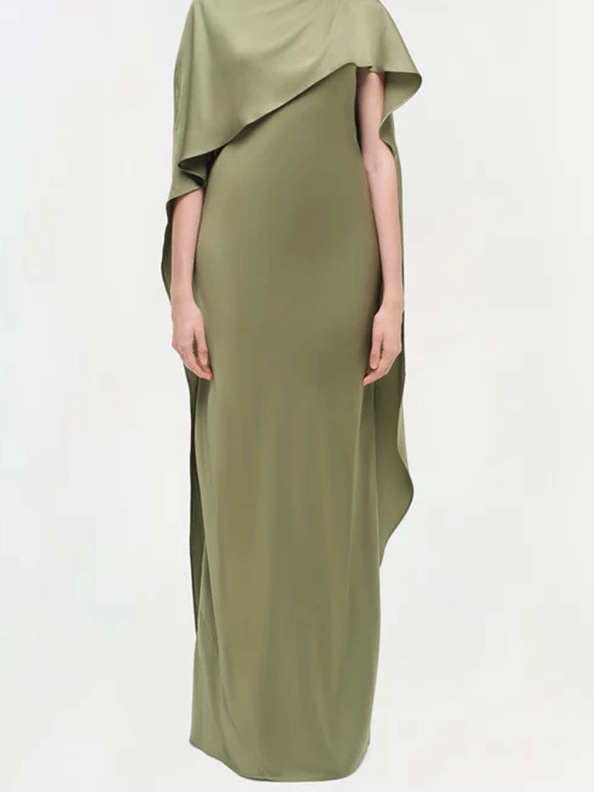 Doté d'une cape, d'une fermeture boutonnée au dos, d'un détail drapé, d'un ourlet asymétrique, de manches courtes, d'un col rond, d'une cape intégrée et d'un design long. composition 84 % acétate, 16 % polyester
