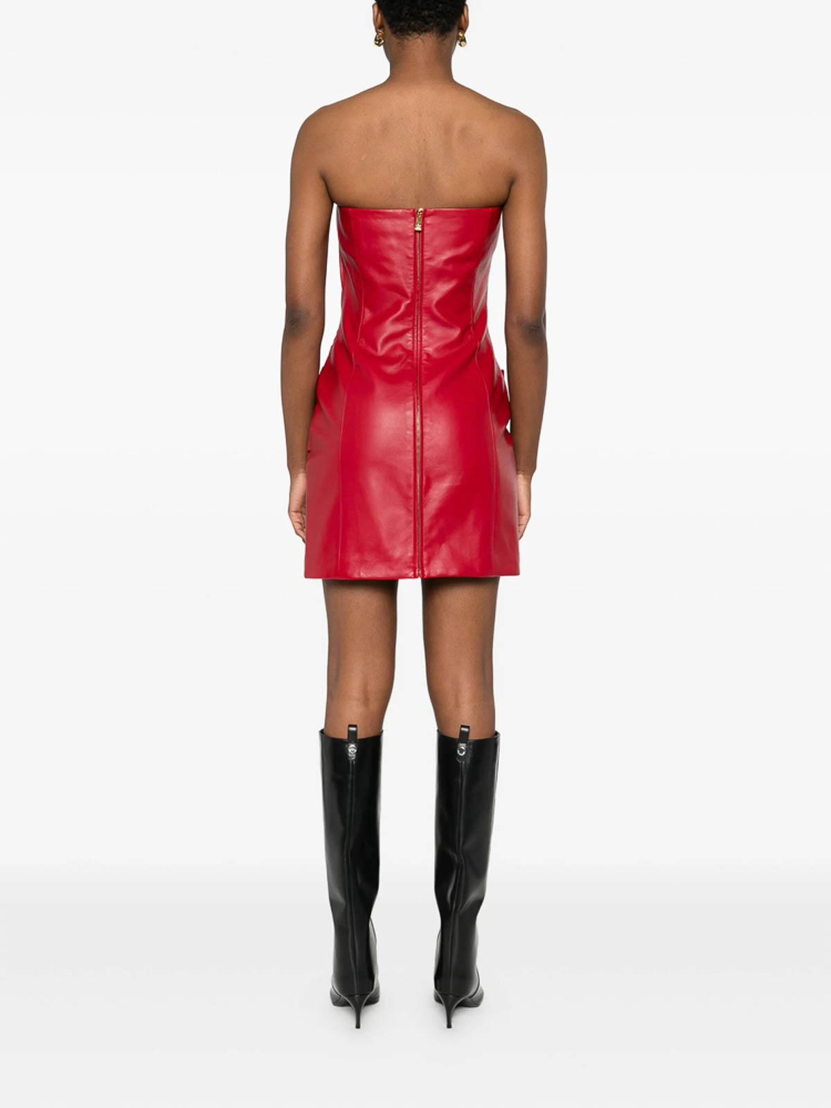 Encolure sans bretelles rouge, taille ceinturée froncée