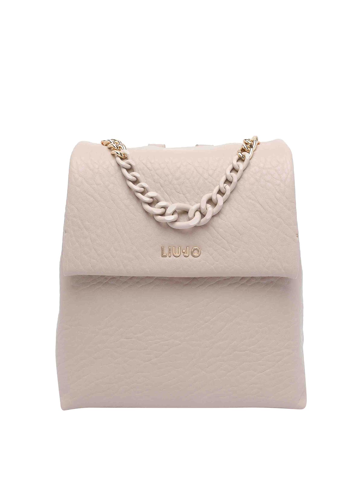 Sac à dos à logo beige Liu Jo, sections à fermeture à pression, poche centrale zippée, chaîne, bretelles adaptables