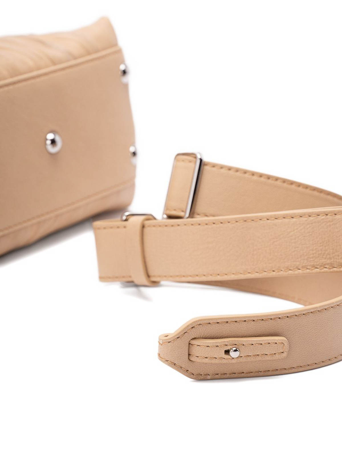 L'emblématique et polyvalent Zanellato « Baby Postina » est disponible dans une version compacte dotée de clous plissés et décoratifs, à porter à la main ou à l'épaule pour apporter une touche sophistiquée à n'importe quel look. Sac fourre-tout Zanellato Baby Postina beige, détails plissés, fermeture simple, clous décoratifs, double boucle, bandoulière amovible et réglable