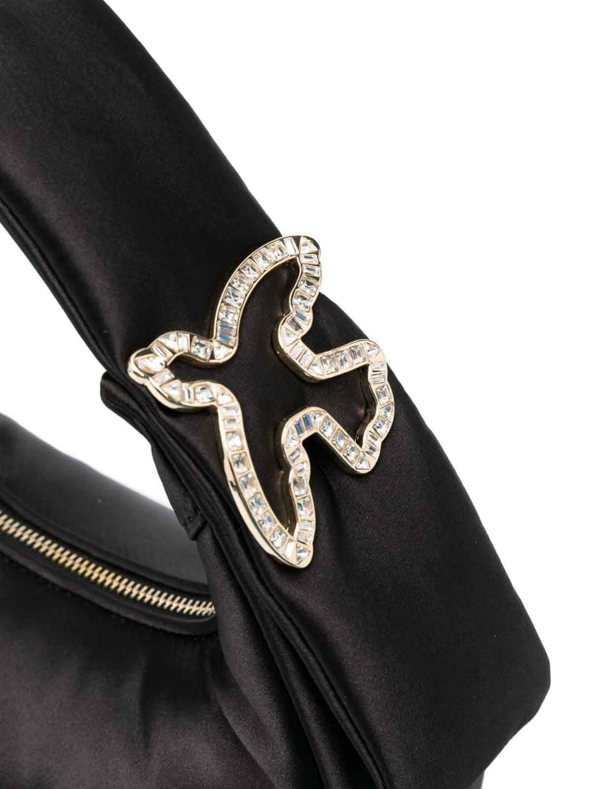 Sac Vibu Hobo de Pinko orné de cristaux noirs, d'une bandoulière amovible en mailles de chaîne, d'un compartiment principal et d'une fermeture zippée sur le dessus