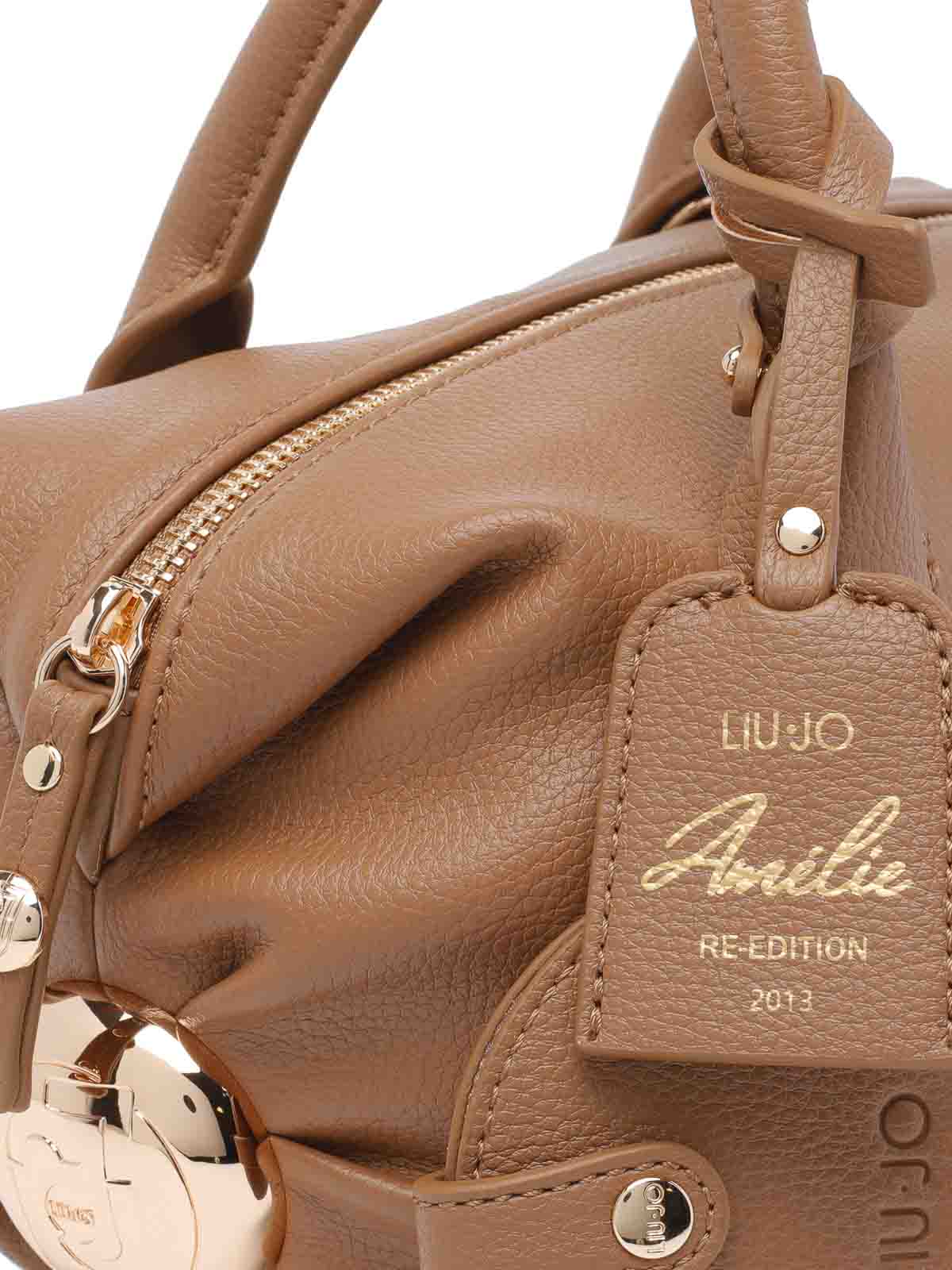 Sac à main Liu Jo beige, logo sur le devant, double poignée, fermeture zippée, bandoulière réglable et amovible, poche intérieure ouverte, 2 poignées