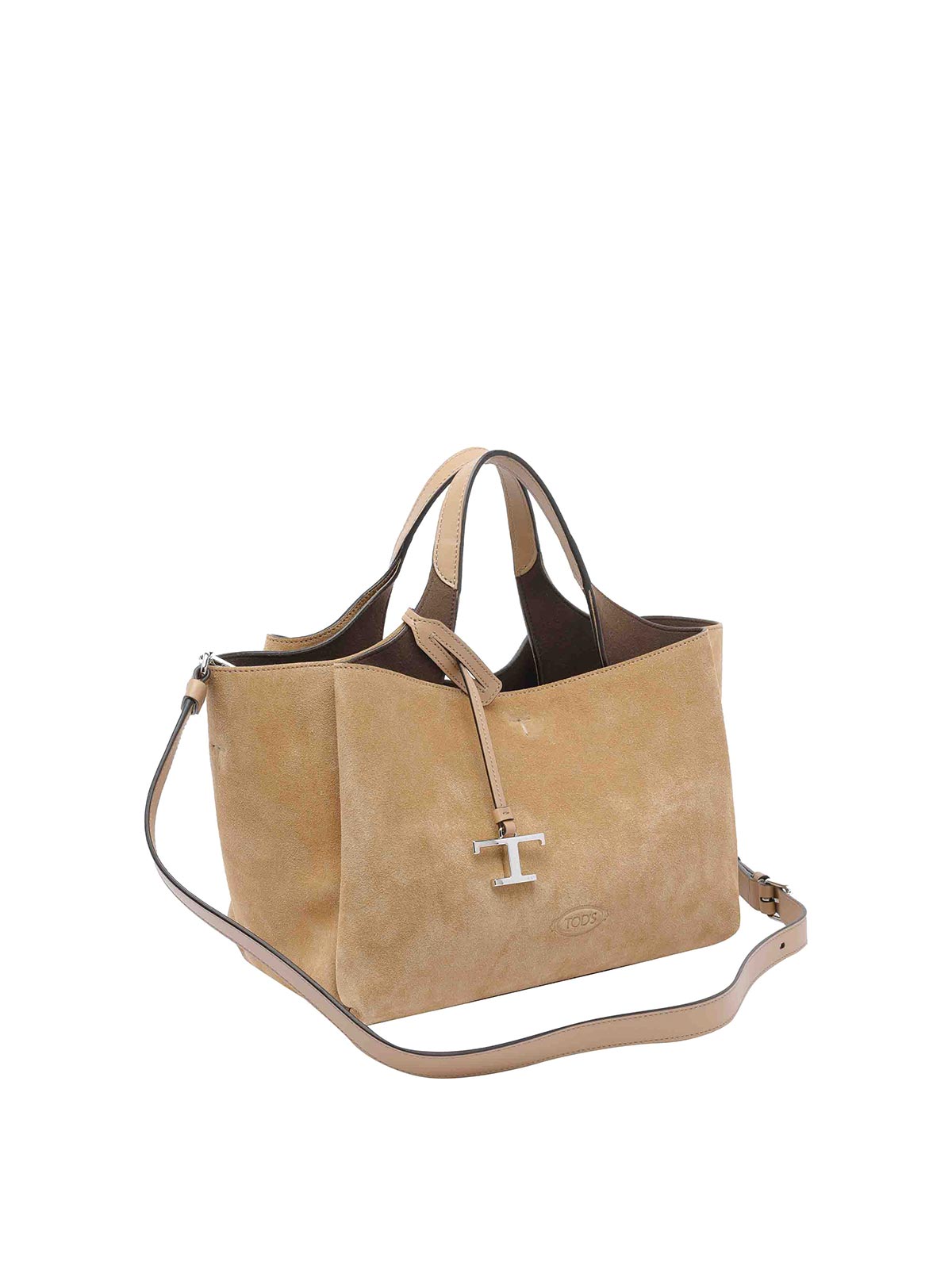 Sac à main Tod's, fermeture à mousqueton, 3 sections, 2 poignées, bandoulière amovible et adaptable, logo en T sur le devant