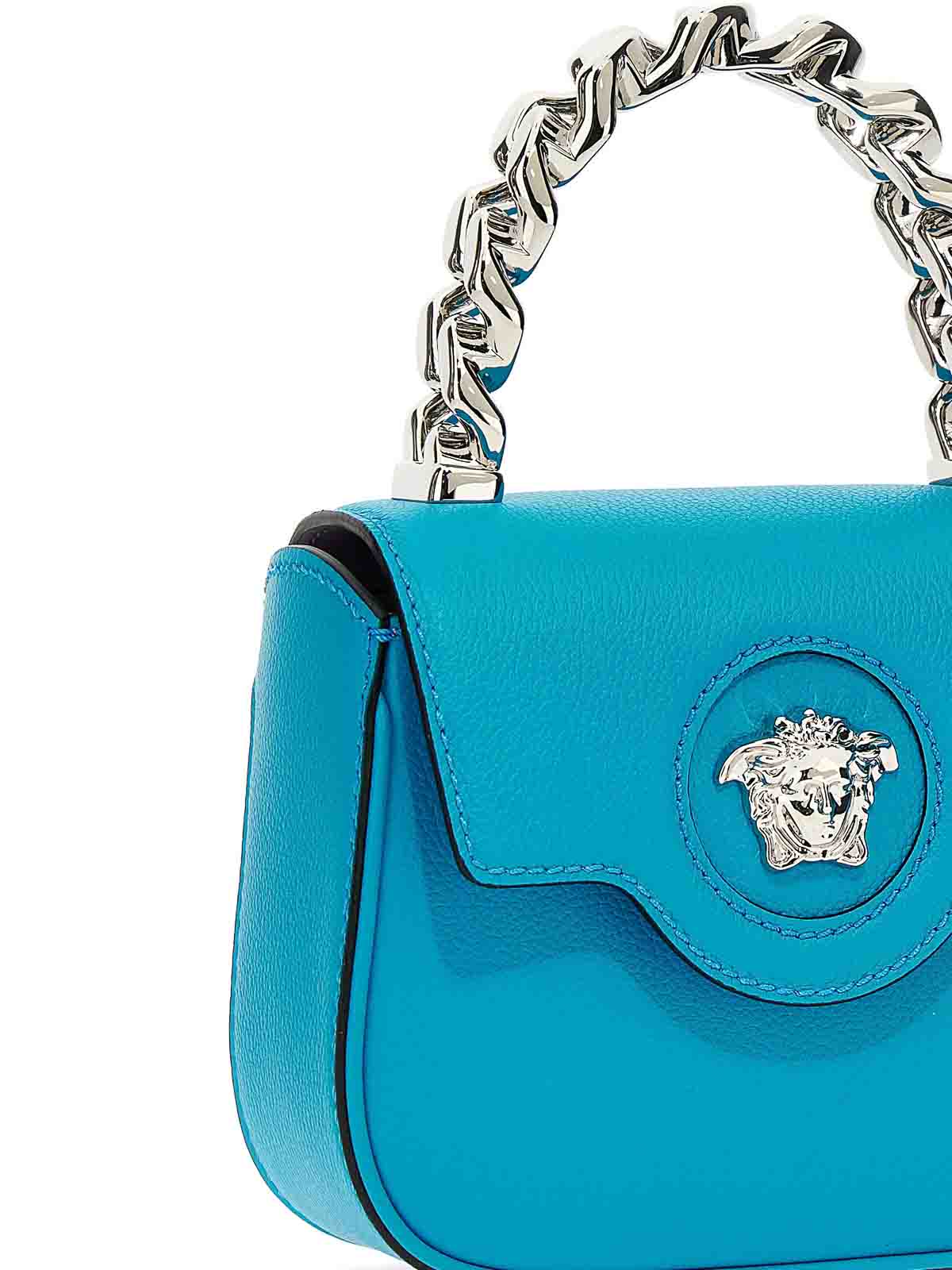 Mini-sac à main « La Medusa », logo central, chaîne supérieure, bandoulière ajustable et amovible, rabat magnétique, trois compartiments pour cartes