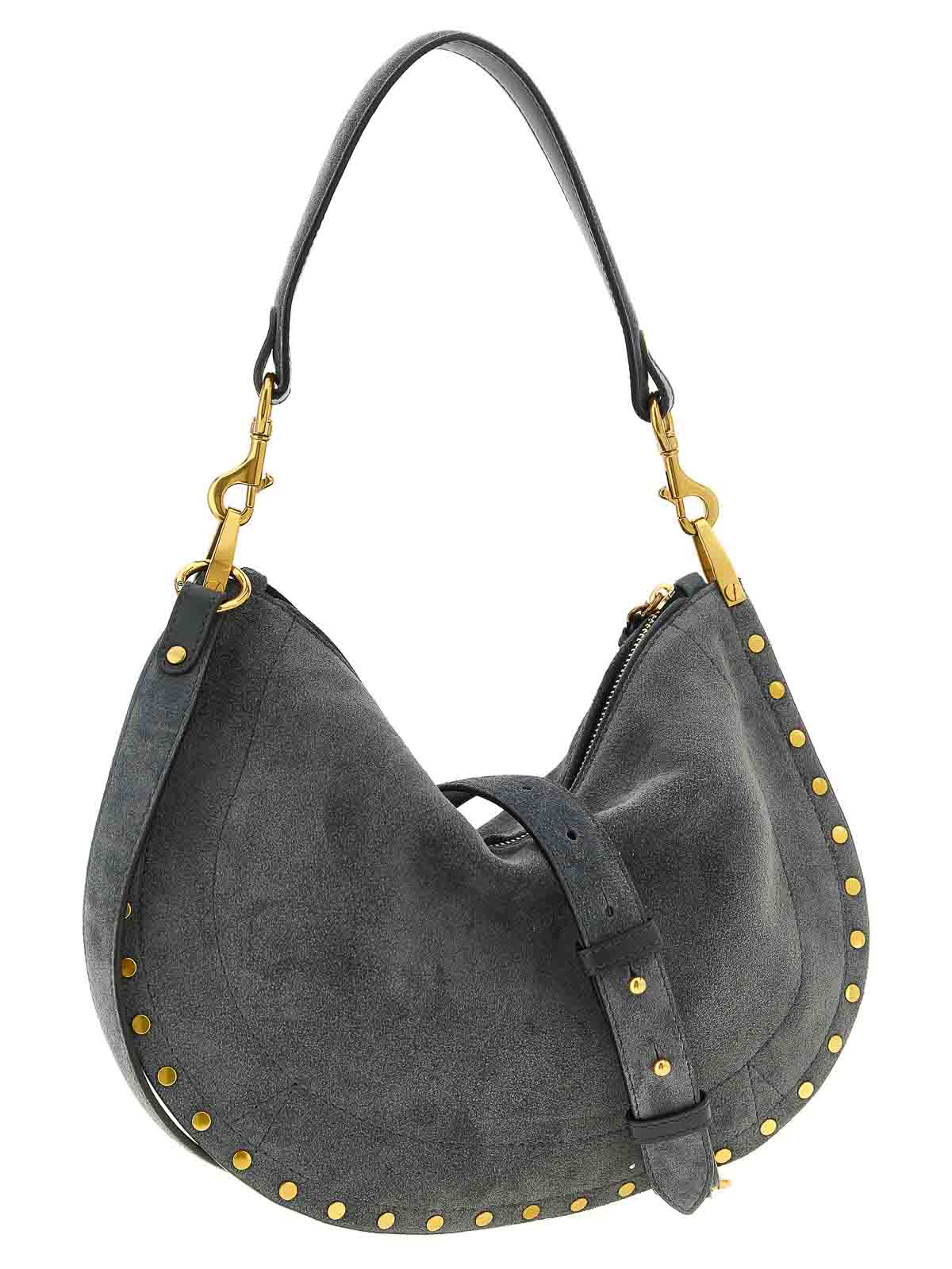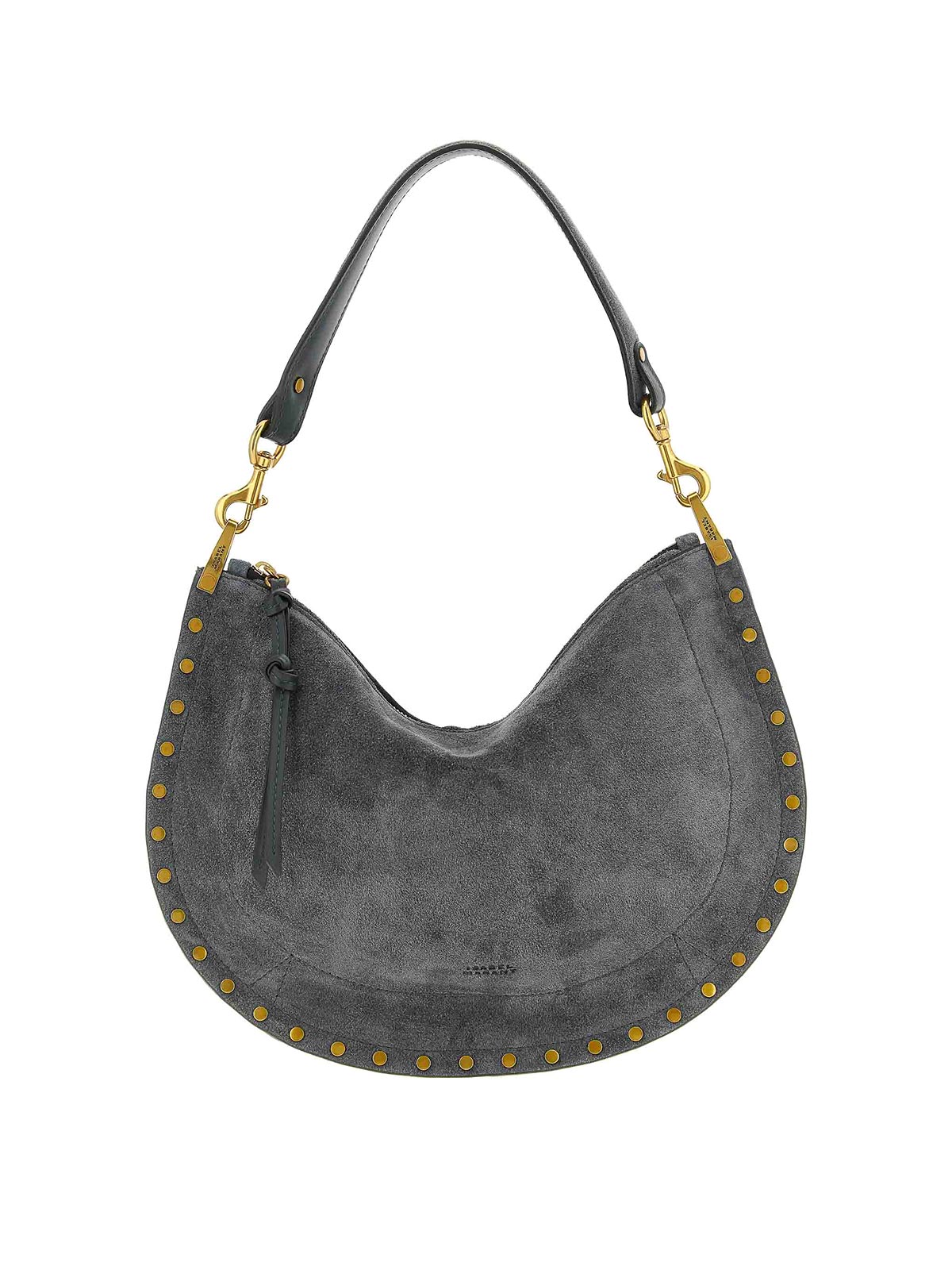 Sac à main en daim « Oskan Soft Zip » avec clous appliqués, logo embossé sur le devant, fermeture zippée sur le dessus, poignée amovible et bandoulière ajustable et amovible.