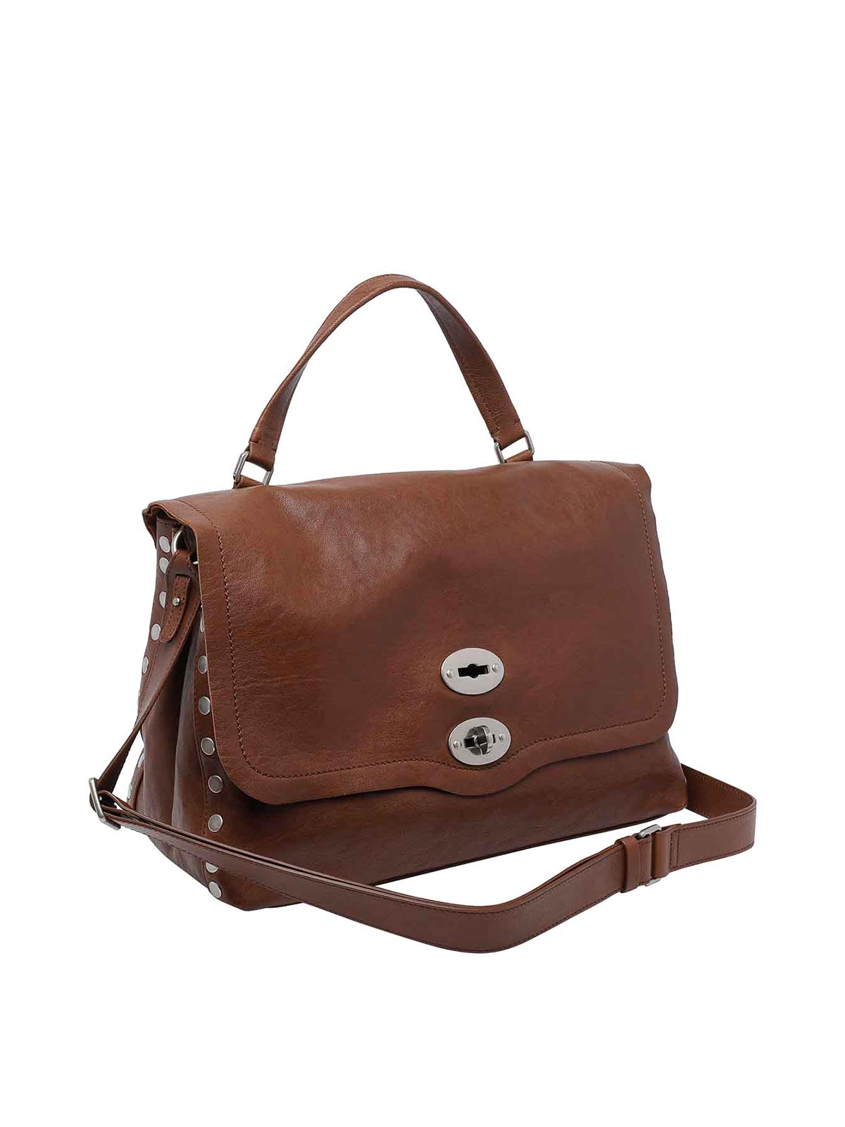 Sac à main Zanellato marron Sandal Medium Postina Tabacco, fermeture à glissière, poche intérieure ouverte, poche zippée, bandoulière adaptable et amovible