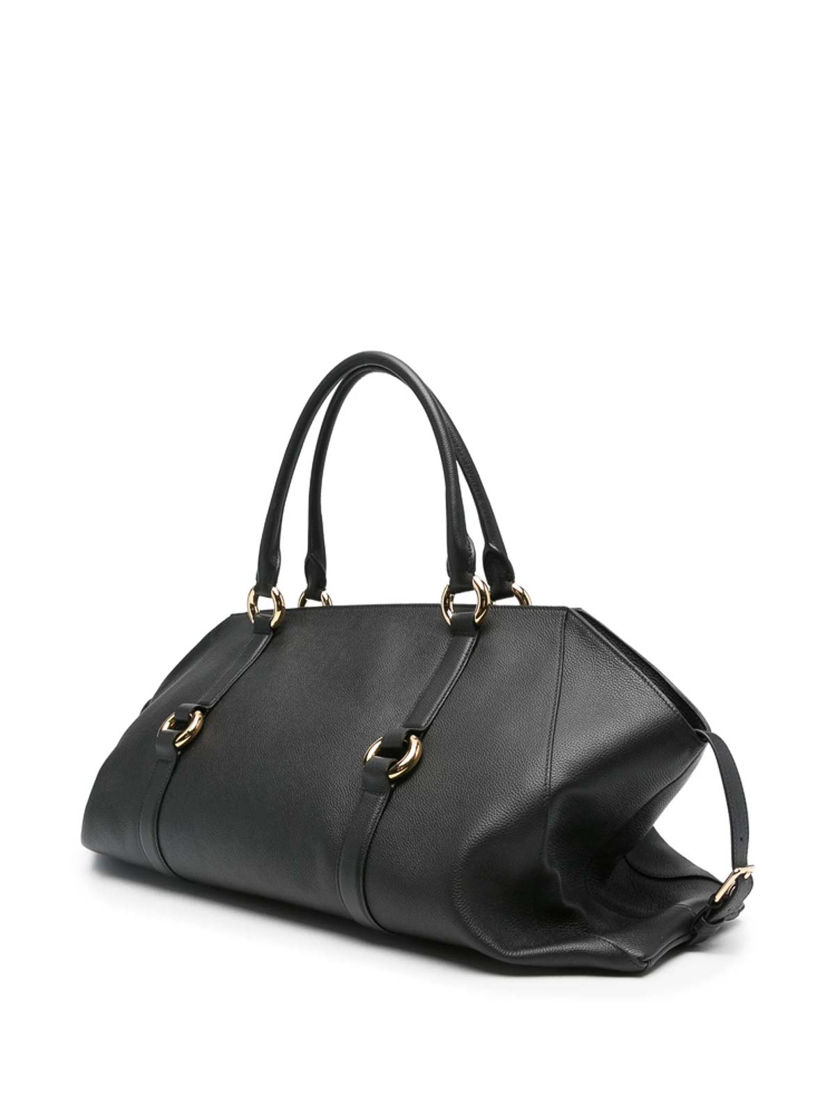 Poignées supérieures noires, anneau ton sur ton, forme trapézoïdale, logo central de la marque