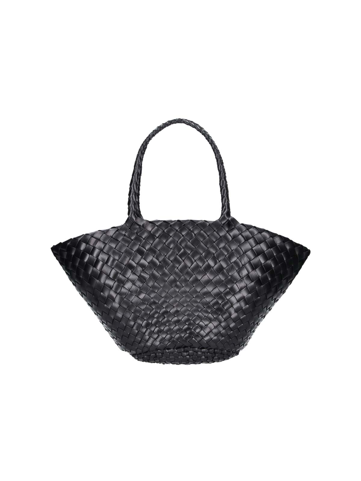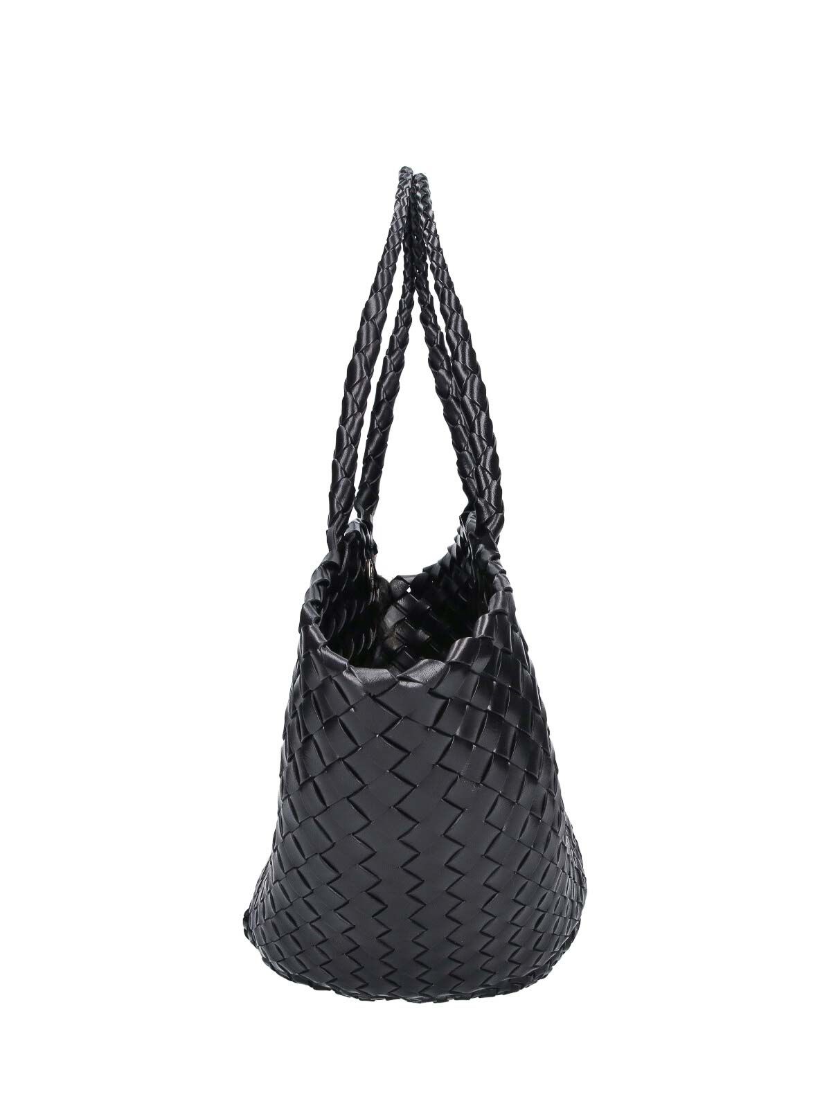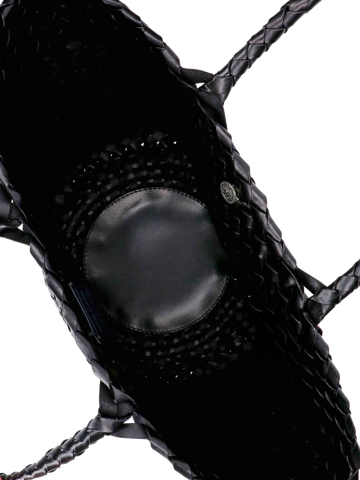 Sac cabas Egola Dragon Diffusion en cuir noir tressé, deux poignées supérieures, fermeture en métal, un compartiment intérieur.