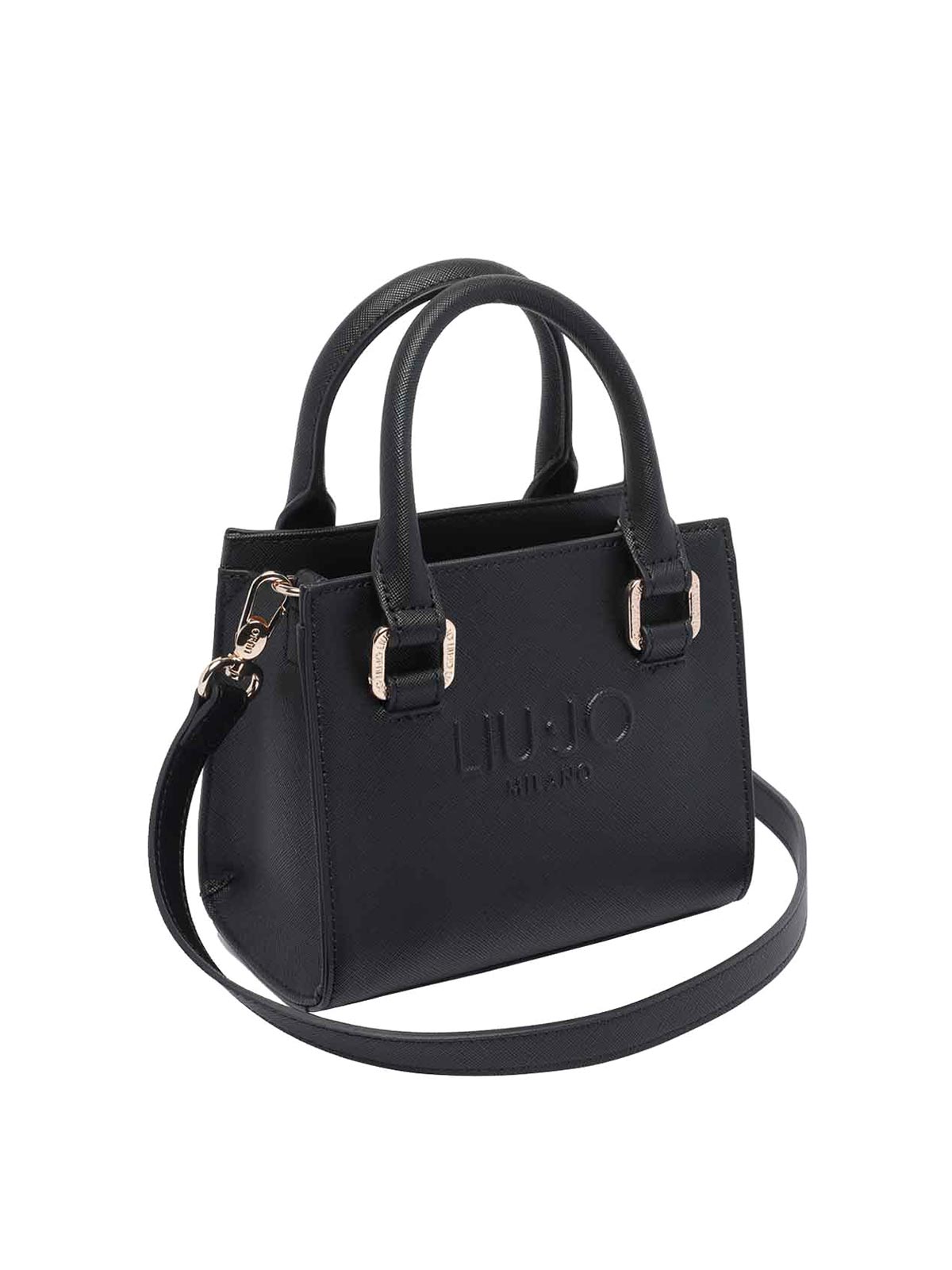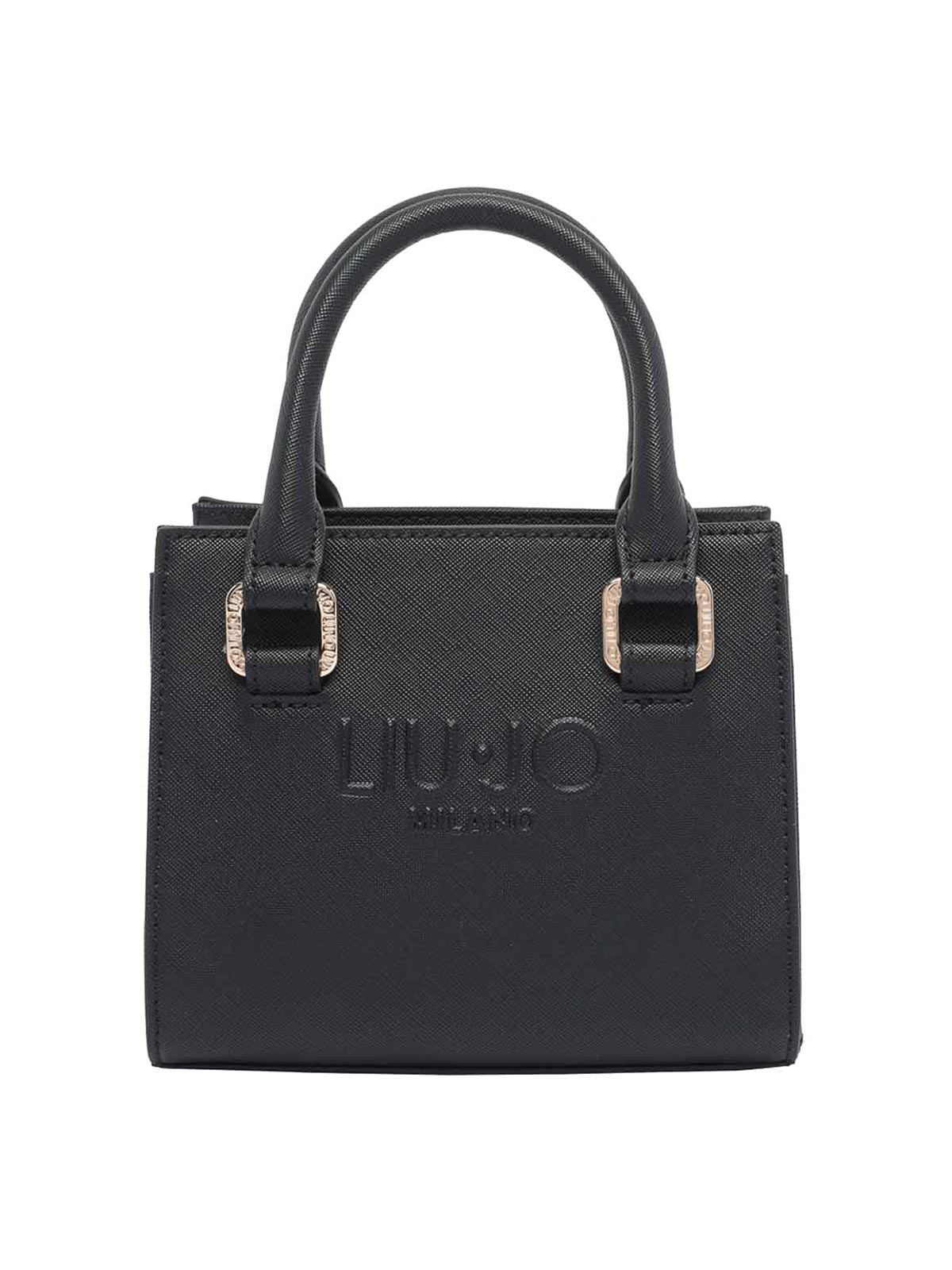 Sac à main à logo noir Liu Jo, fermeture éclair, bandoulière adaptable et amovible, logo ton sur ton sur ton sur le devant,