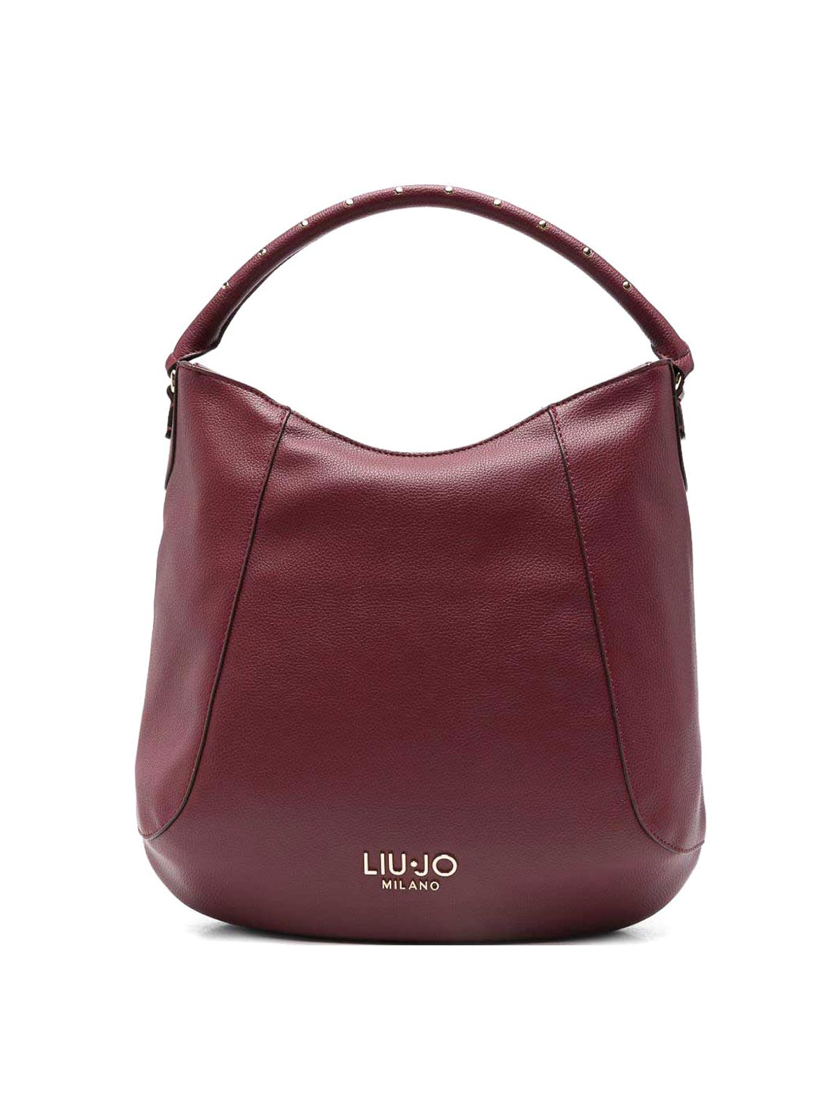 Poche zippée sur le dessus bordeaux ornée de clous et logo