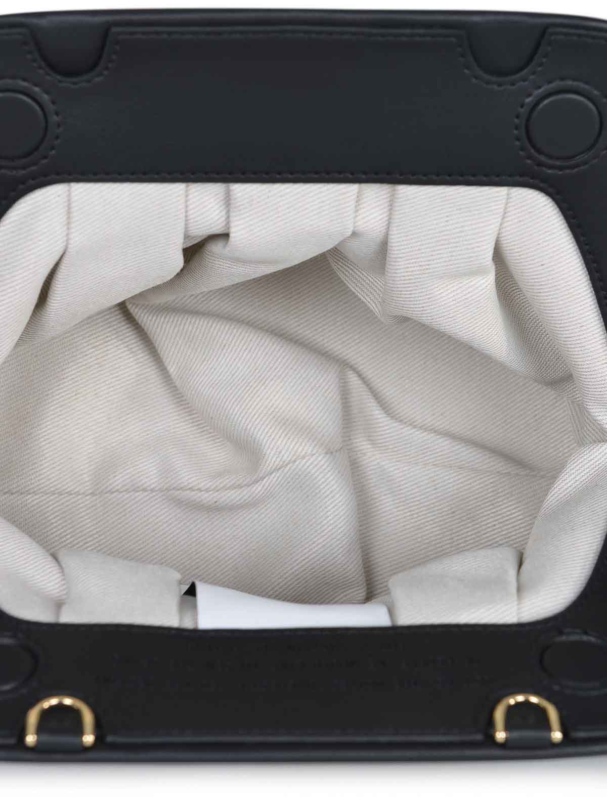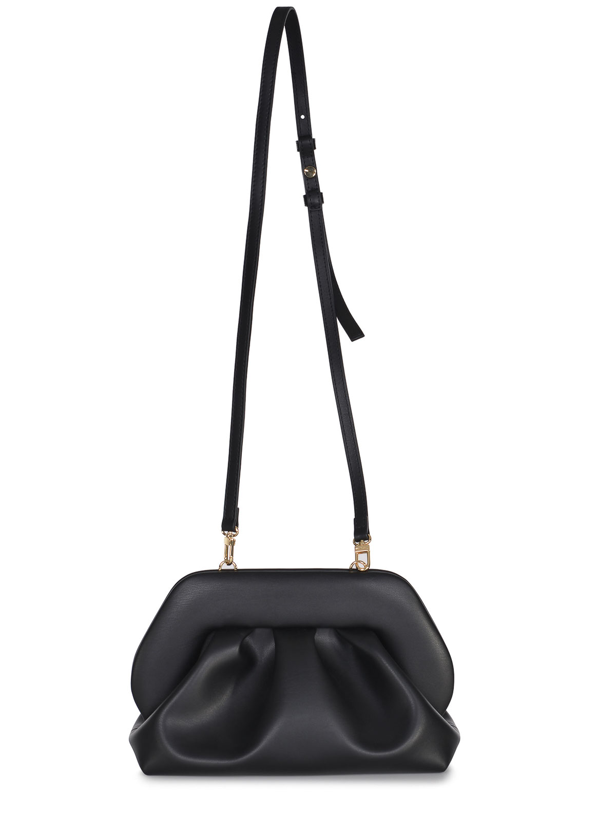 Sac Themoir Tia en cuir écologique noir. fabriqué avec des matériaux recyclés et durables. finitions en métal doré. détails froissés. fermeture magnétique supérieure. intérieur doublé, coton biologique. bandoulière ajustable et amovible. Hauteur 16 cm, largeur 30 cm, profondeur 11 cm 100 % PU fabriqué en Italie