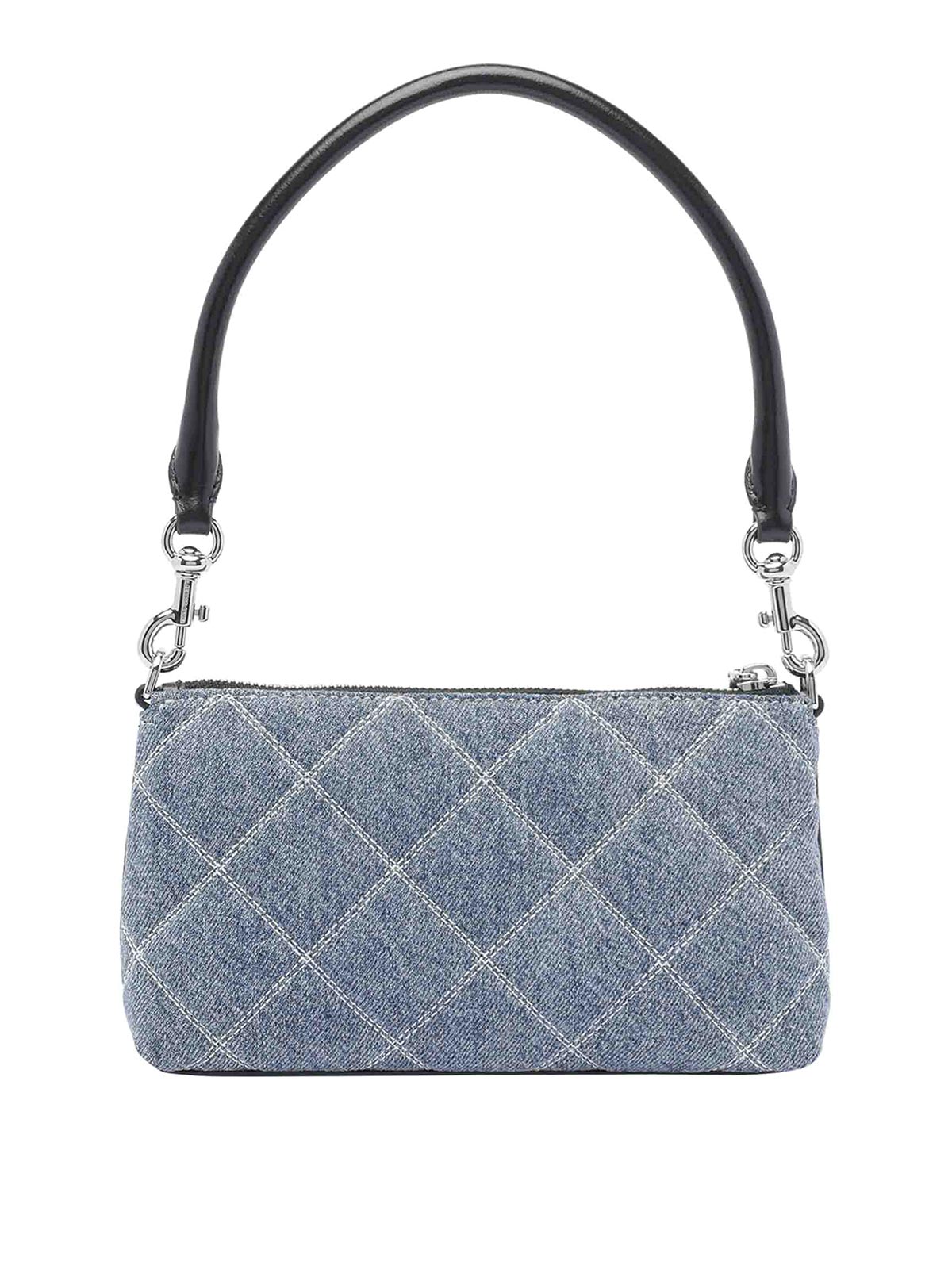 Sac à bandoulière Marc Jacobs en jean The Pochette, fermeture zippée, 3 fentes, poignée amovible, bandoulière en chaîne amovible, logo