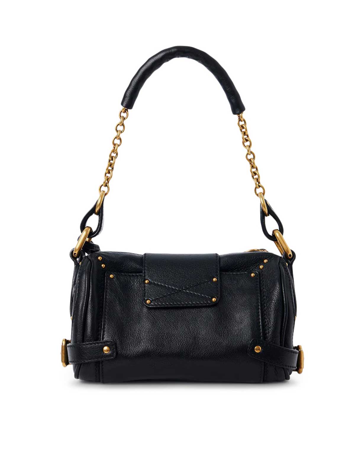 Fermeture éclair et rabat avec cadenas à logo emblématique, tubulaire avec chaîne et bandoulière amovible et réglable, deux poches plates, -, - l h d, couleur noire