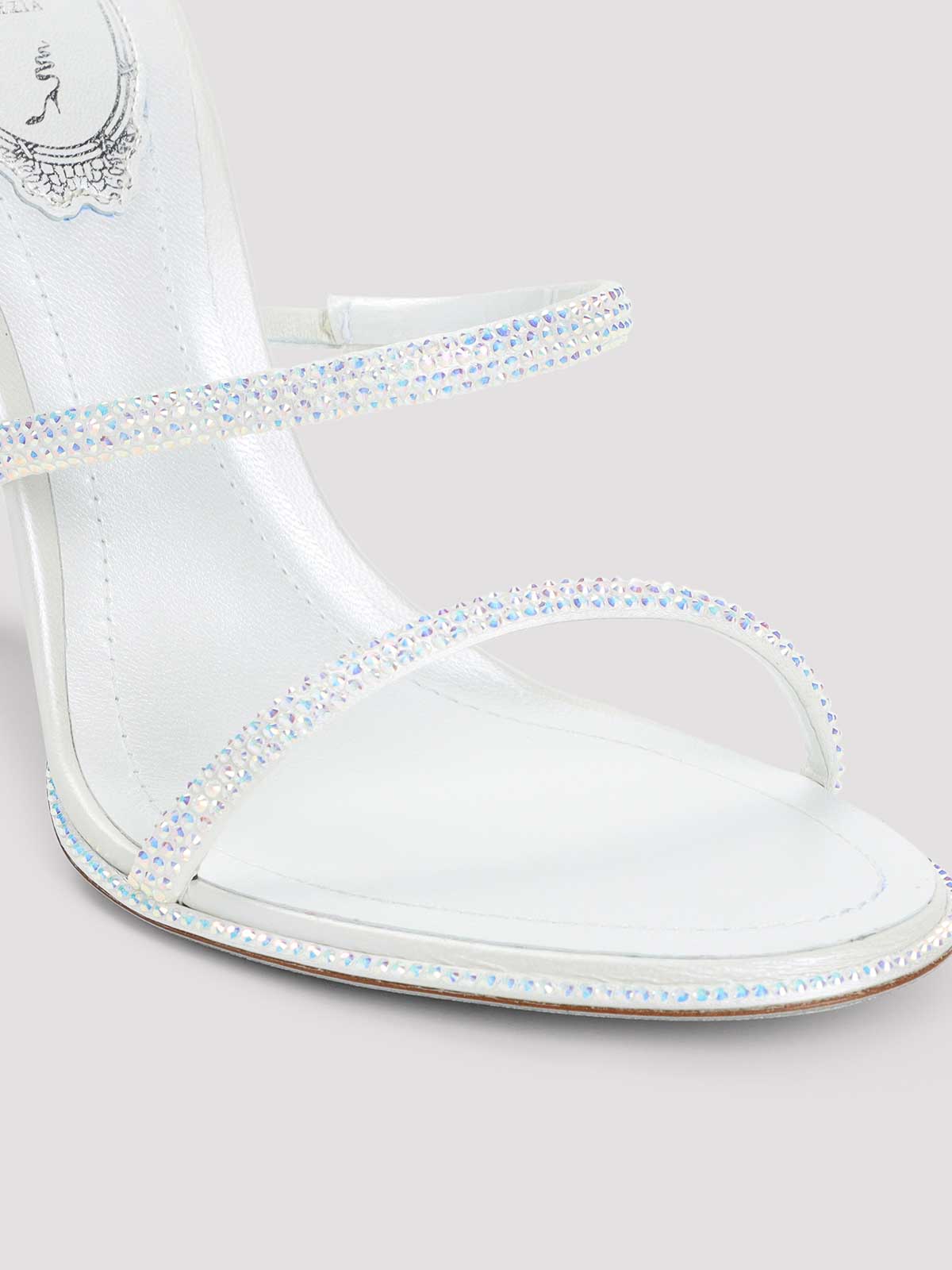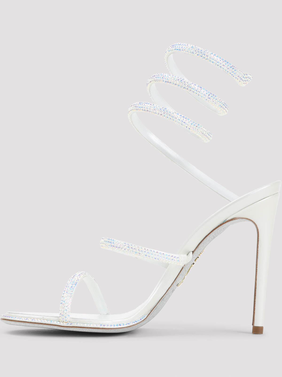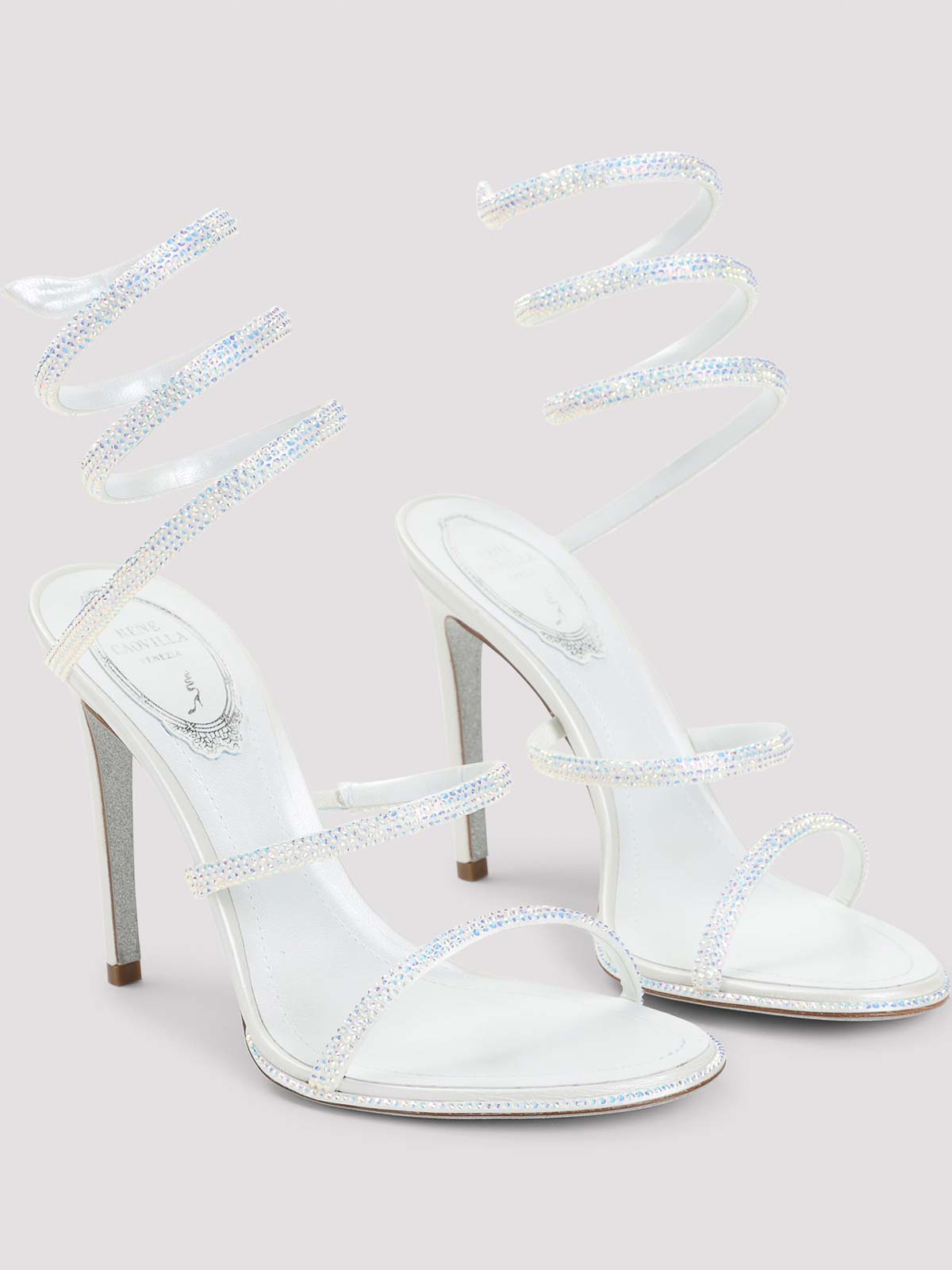 Sandales Ren Caovilla Cleo en ivoire confectionnées à partir de bretelles supérieures à bout rond ivoire et d'une bride de cheville emblématique en forme de serpent ornée d'un stiletto recouvert de rose marqué à l'intérieur et à l'extérieur