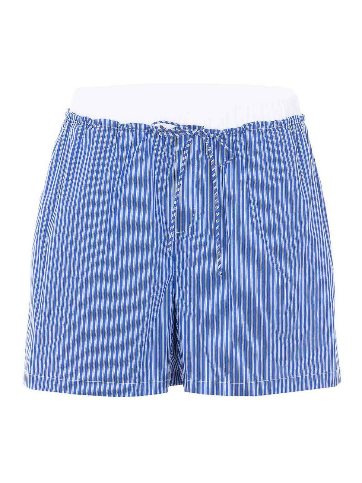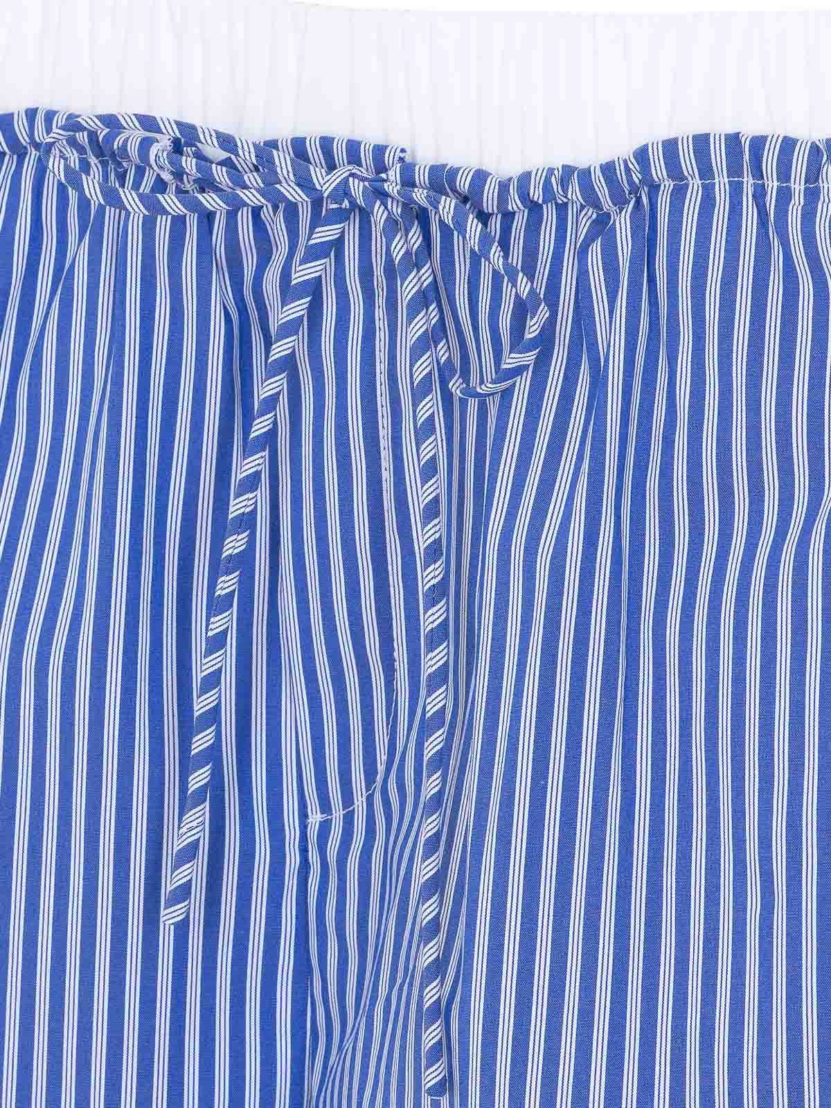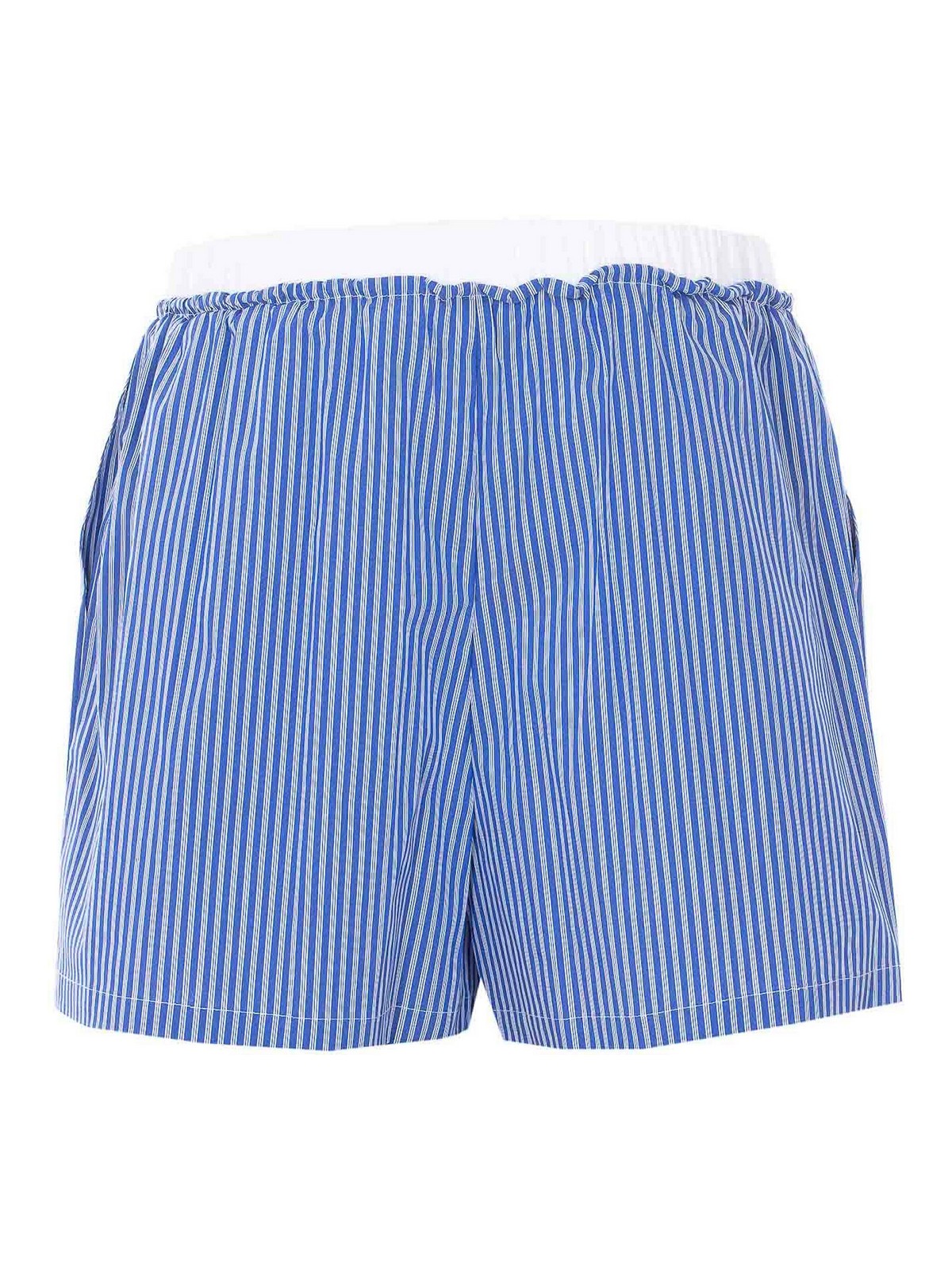 Short blanc et bleu Eleh, fermeture à cordon, profils contrastants à la taille, rayé, effet large
